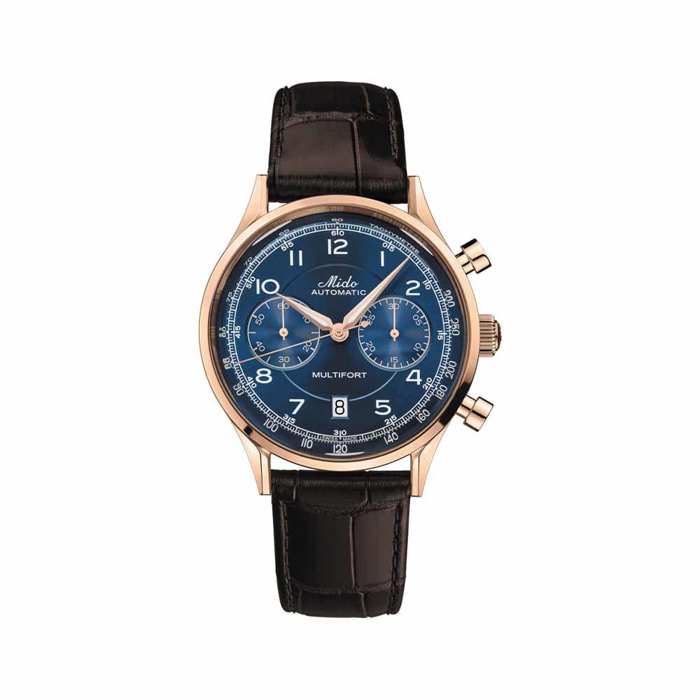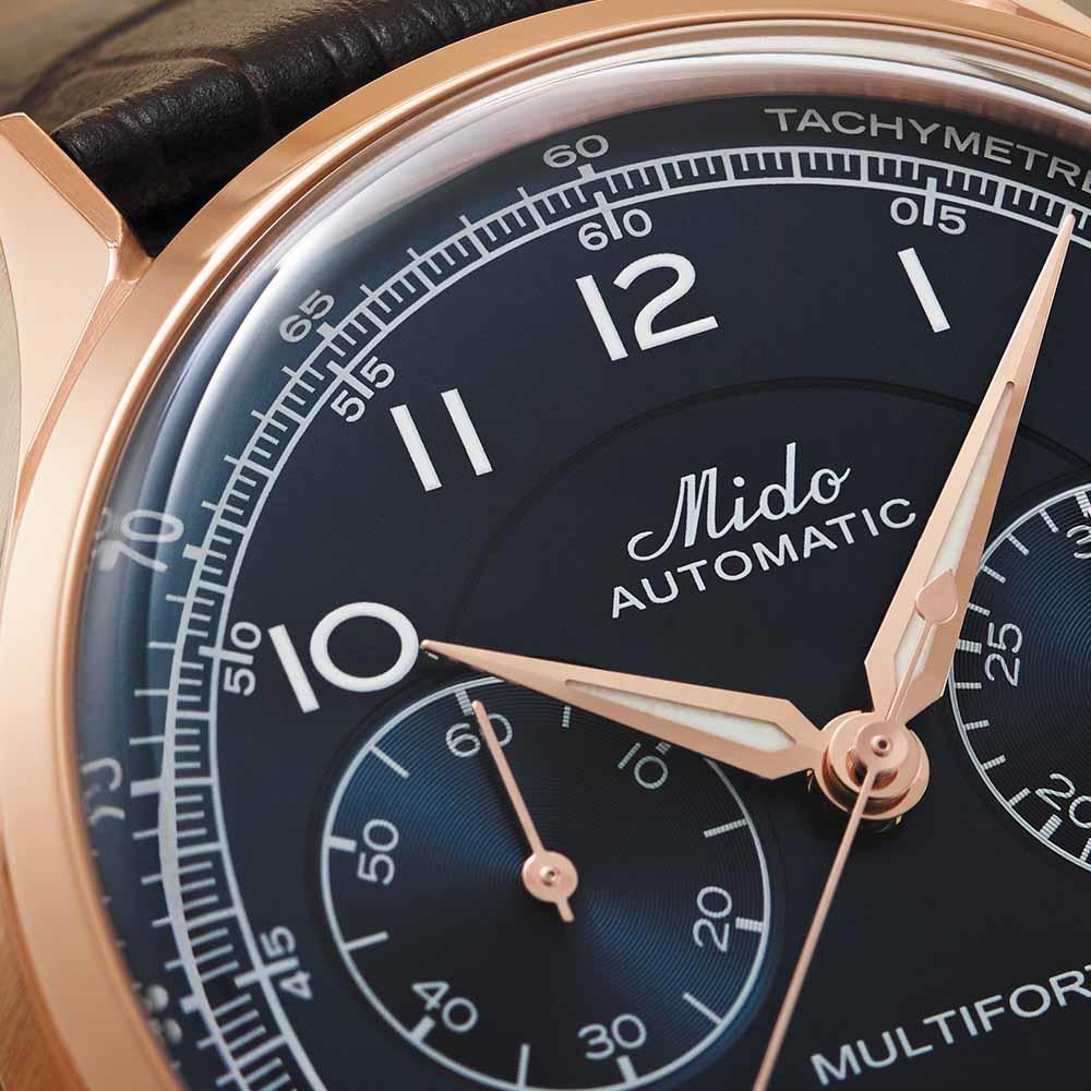I Mido Multifort uniscono eleganza e robustezza dal 1934. Modelli iconici come Mido Multifort TV Big Date e Mido Multifort 8 Two Crowns offrono funzioni GMT e dettagli raffinati, ideali per viaggiatori e collezionisti.