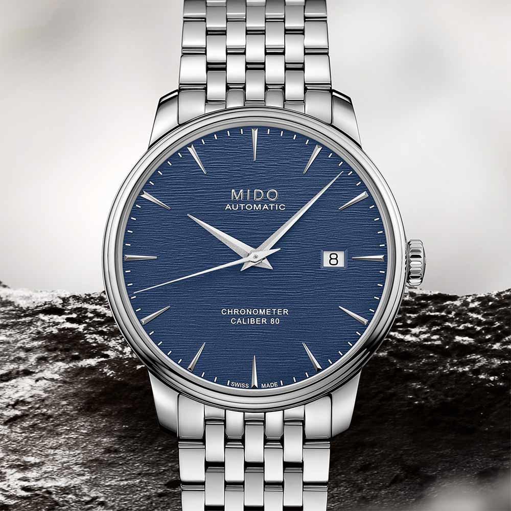 Gli orologi Mido si distinguono per il movimento automatico Calibro 80 con 80 ore di riserva di carica, vetro zaffiro antigraffio, impermeabilità fino a 600 metri (modelli Ocean Star) e design ispirato all’architettura.