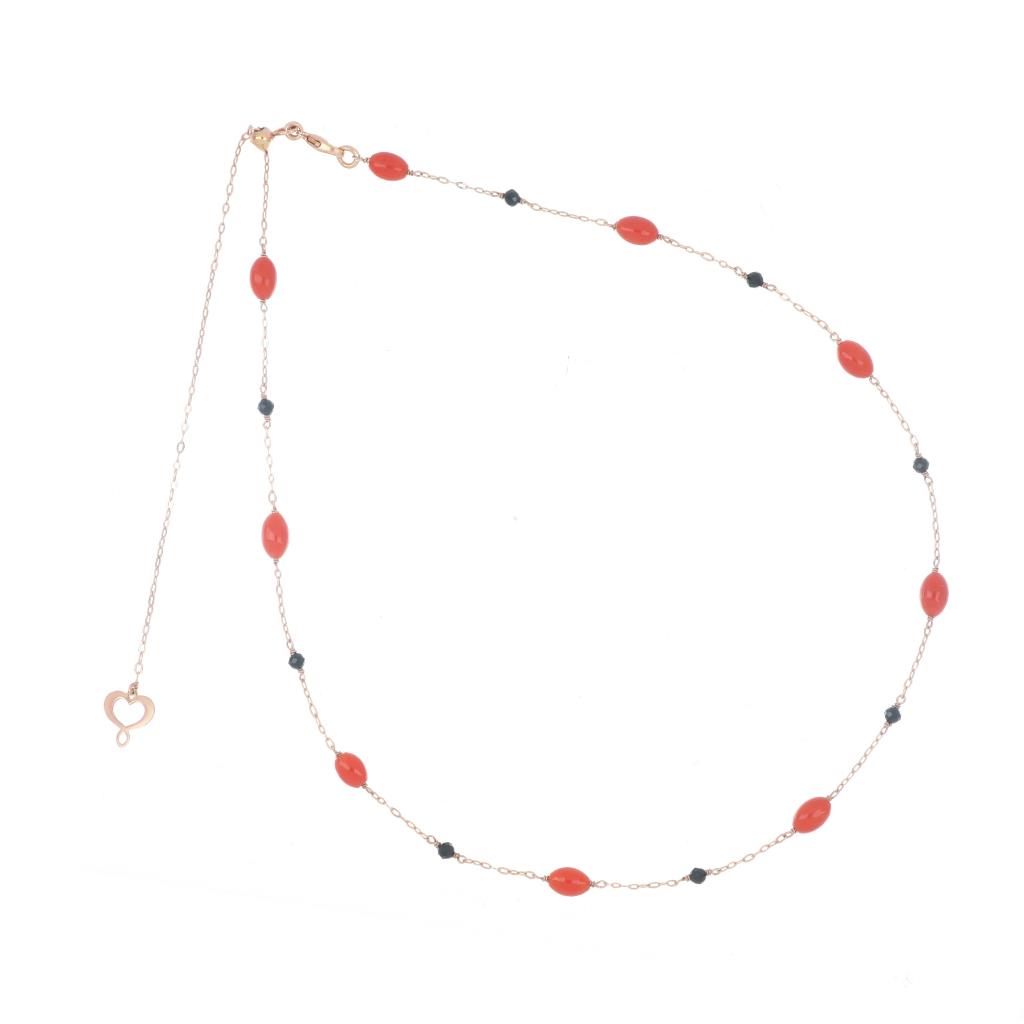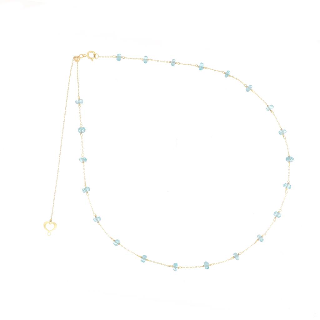 Aurum necklace made of 18kt gold with chain and Malachite stones with a diameter of 3 mm. The circumference of the choker can be adjusted from a minimum of 31 cm up to a maximum of 40 cm. Spring ring closure.