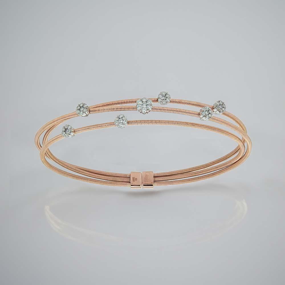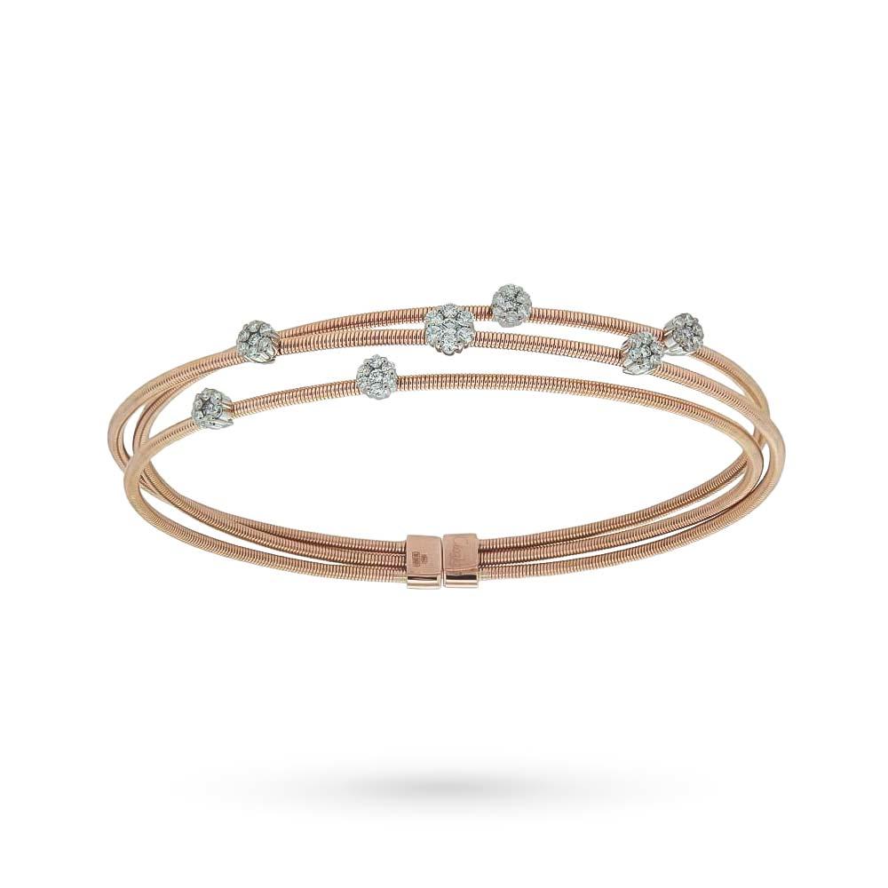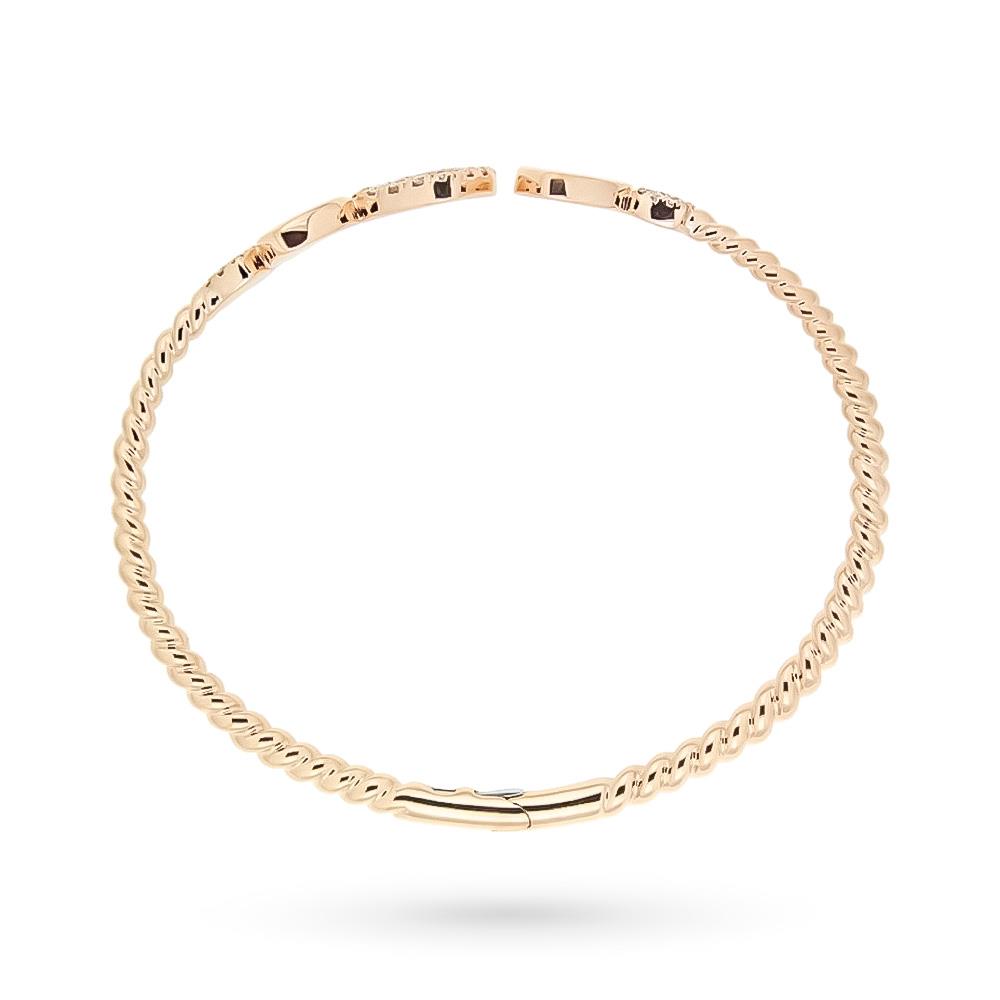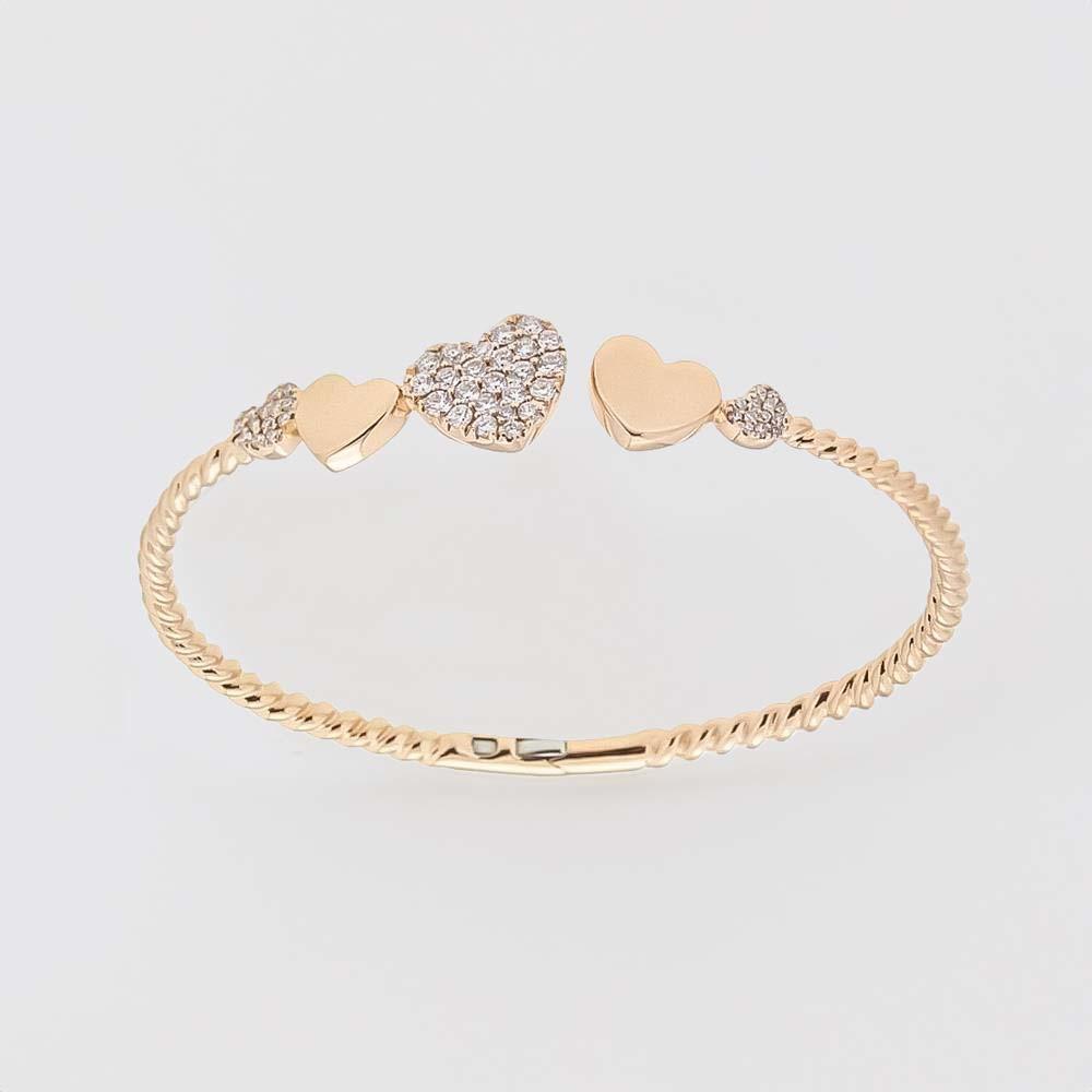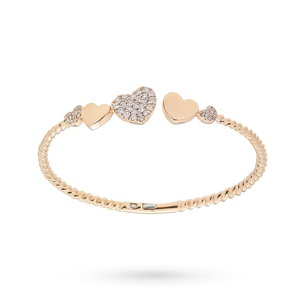 This stunning 18kt rose gold bangle, created by the master jewelers of Cicala, is a symbol of elegance and romance, ideal as a precious gift for Christmas or for a special occasion. Made with a thick, finely shaped rose gold thread, the bracelet features delicate alternating hearts at the ends: some with a polished surface and others enriched with a pavé of brilliant-cut diamonds.