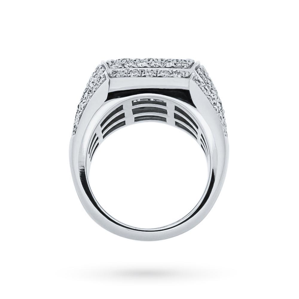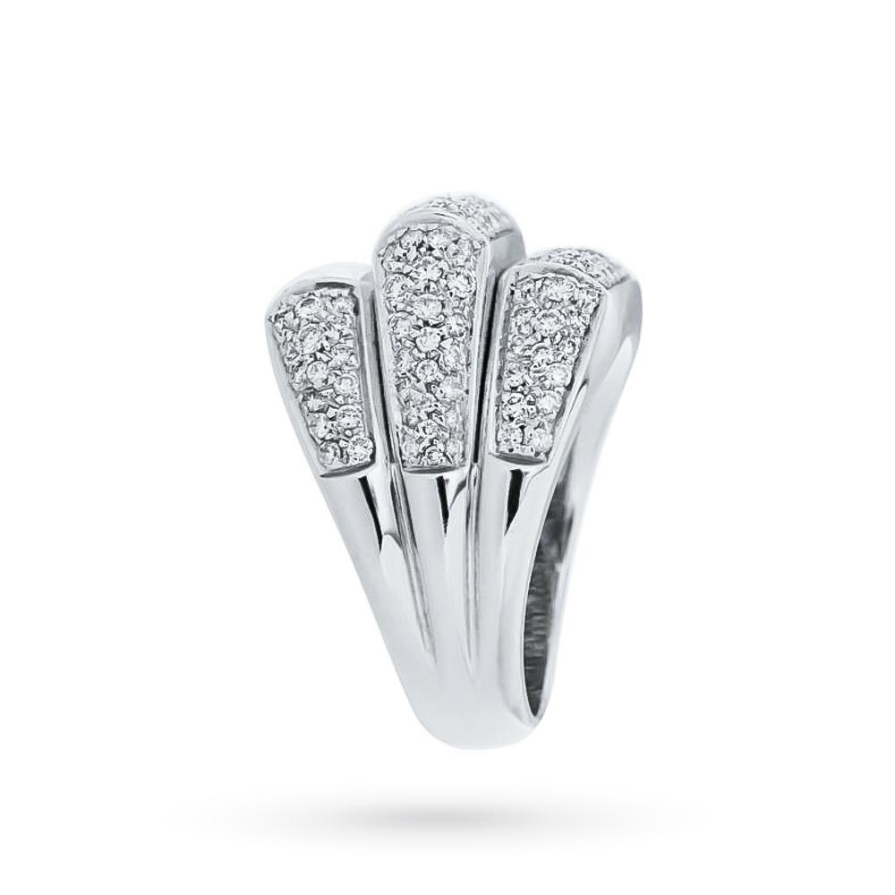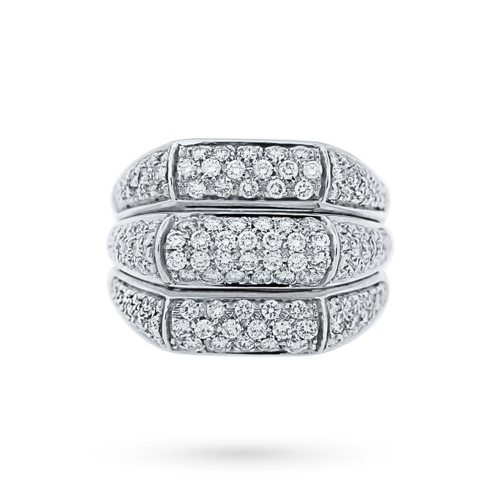 Salvini ring in white gold with pavè band of diamonds 1.60 ct. This Salvini ring is made entirely of precious nickel-free 18kt white gold. It has a band design made up of three steps on which a dense pavé of magnificent round brilliant cut diamonds with a total carat weight of 1.60ct is firmly placed. The fine manufacturing of the jewel, handcrafted with incredible skill, makes this jewel a true beacon of light capable of satisfying the gaze.