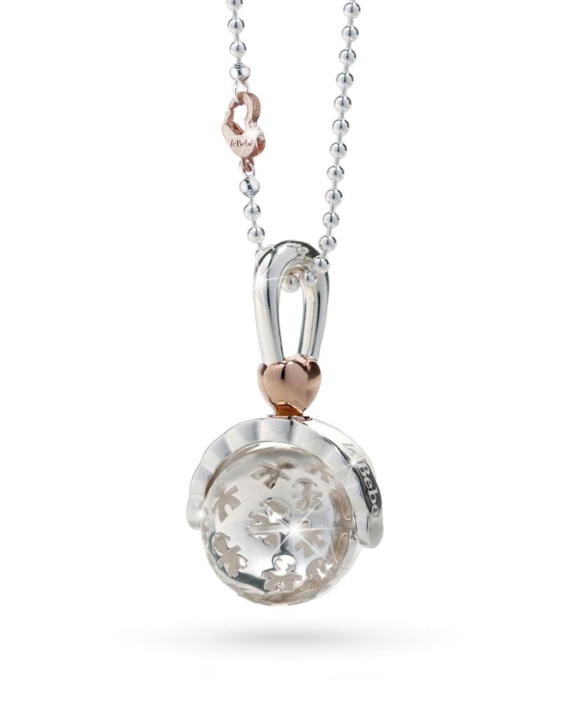 This elegant maternity chime necklace is designed to accompany you throughout your pregnancy with a gentle and soothing sound. Crafted in fine 925 silver, the pendant emits a soft chime that is believed to create a calming effect for both mother and baby. Known also as a pregnancy bola or angel caller necklace, this cherished accessory holds deep emotional meaning and is a timeless keepsake for every expecting mom. The pendant features a contrasting heart detail in rose gold-plated silver, adding a touch of warmth and love to the design. The chain is adjustable from 100cm to 90cm, allowing the harmony ball necklace to rest comfortably over your growing belly and resonate gently with each movement. A heart-shaped carabiner, also in rose gold-plated silver, completes the piece with elegance and charm.