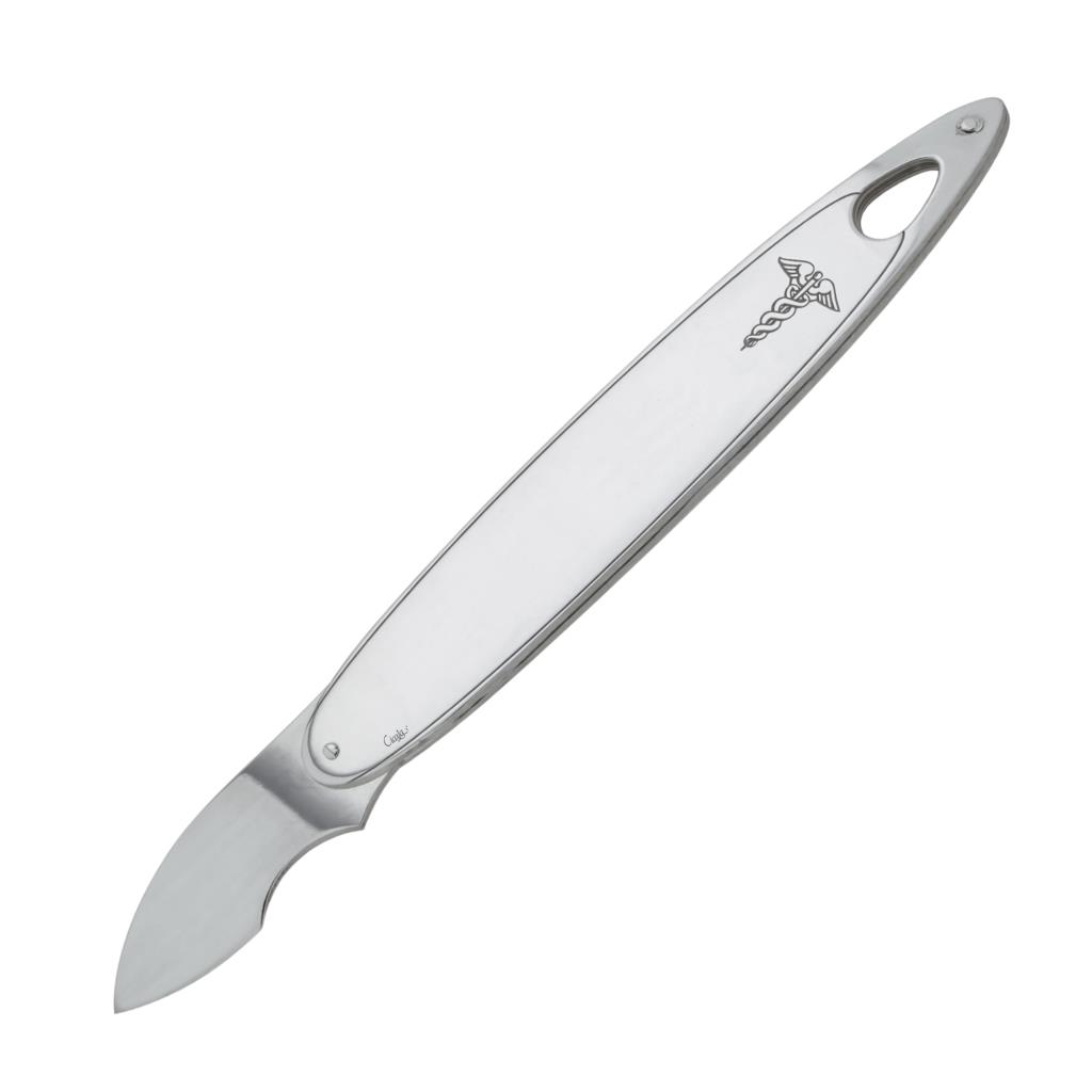 This little silver knife, or labels remover, was created to celebrate an important anniversary for those who, for example, graduate in medicine or pharmacy. The entire surface of the small knife is customizable: in this case, for example, there is the Caduceus symbol on both sides, and the engraving of the name of the doctor who owns the knife. Of course, engraving is just an example and can be done with every name or company symbol, on one side or both. It is a perfect gift idea given the possibility of engraving, in addition to the name of the person who will use it, also a dedication or a date.