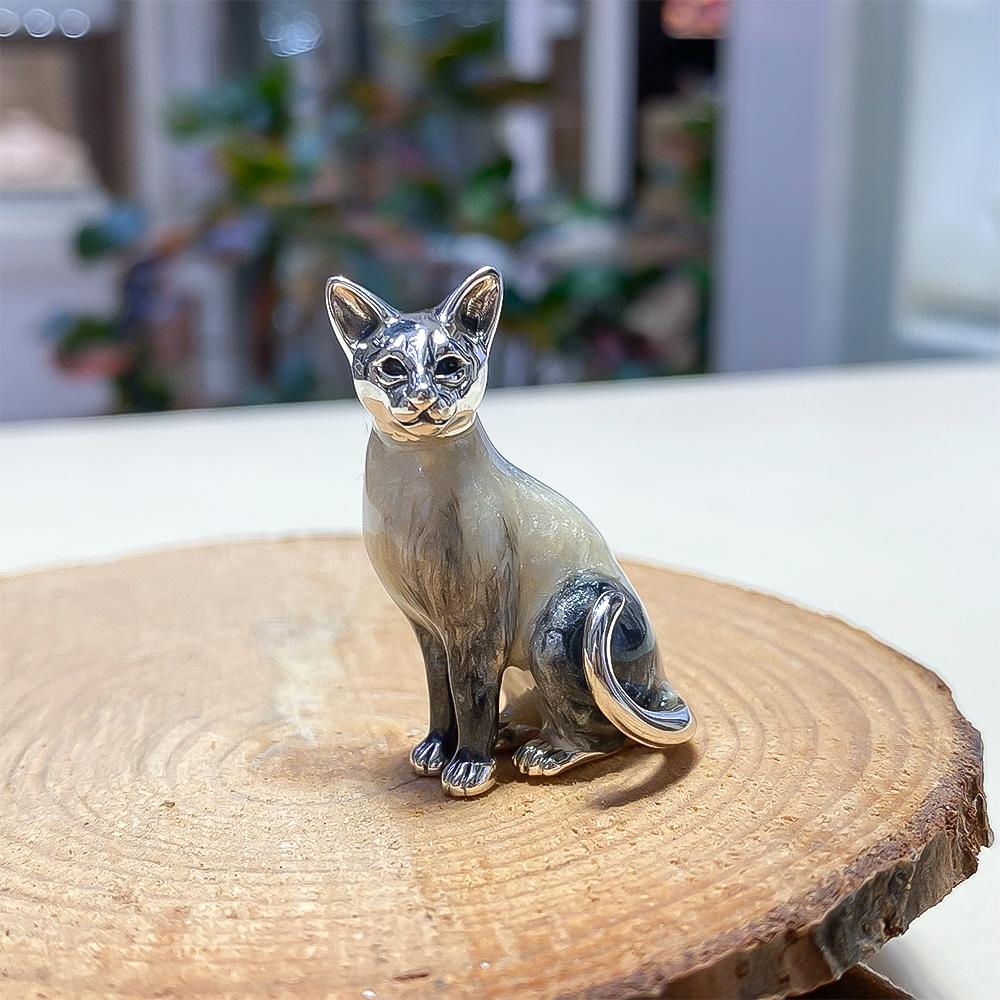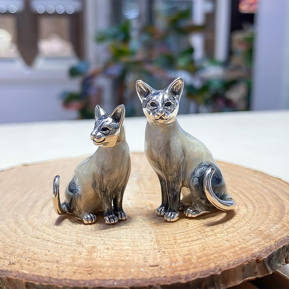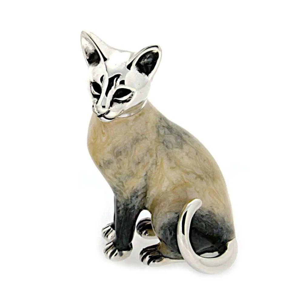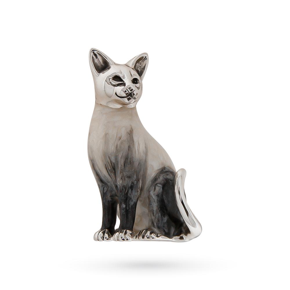 This silver ornament, part of the Animals collection, represents an elegant large Siamese cat. Handcrafted with extraordinary attention to detail, this unique piece is perfect for enriching any environment such as your home or office. The fine material used is 925 Silver, ensuring durability and brilliance over time. The dimensions of the product are Length 21 mm, Height 37 mm, Width 22 mm, perfectly balanced to capture attention without being invasive. Each Saturno creation is made in Italy and handcrafted, which means that details such as colors and enamels may vary slightly, making each piece truly unique. Cicala is an official Saturno reseller and offers a guarantee on every product. Shipping is always insured and free. Thanks to its timeless elegance, this ornament is also a splendid gift idea for any occasion, from Christmas to anniversaries, or to enrich your office with a touch of class. Item: ST113-1. Made in Italy.