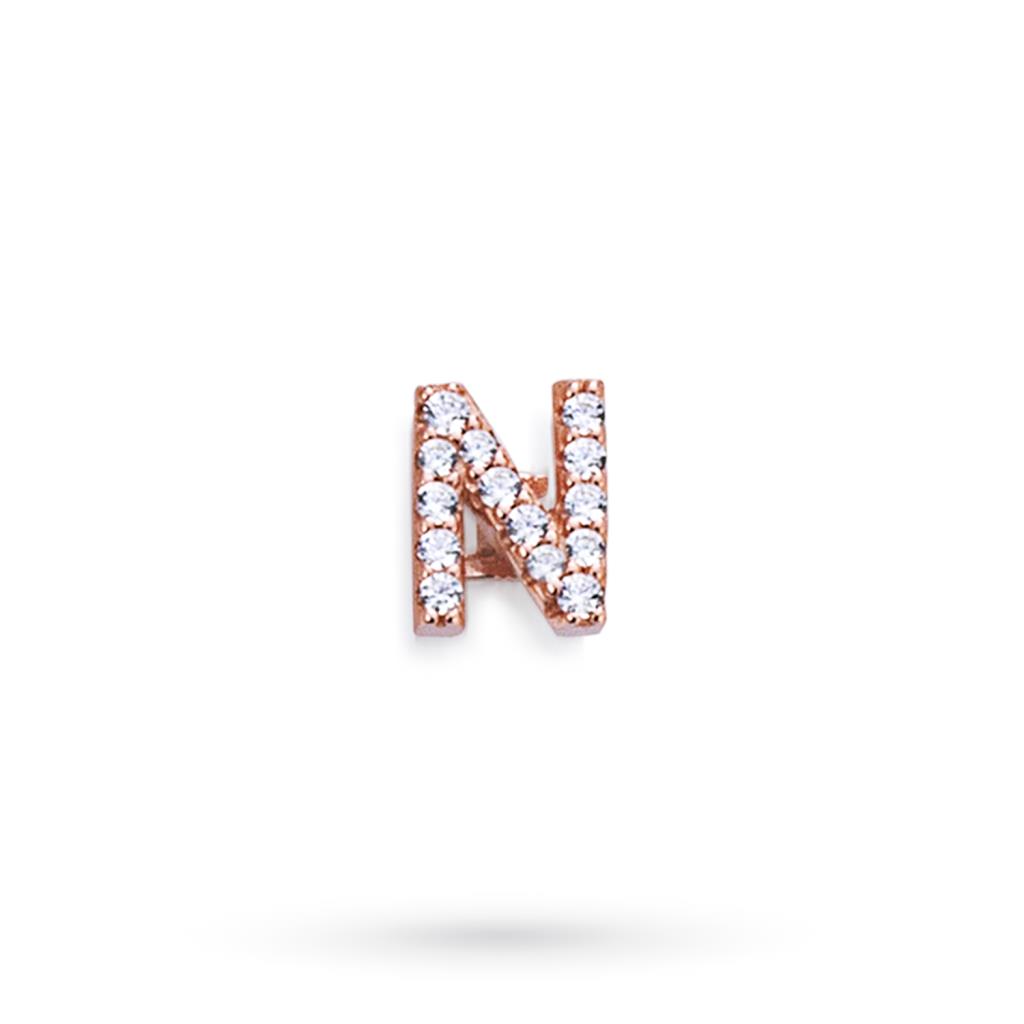 The jewel you are looking at is a component for the Letters collection by Marcello Pane with letter N, made of 925 pink silver and decorated with elegant white sapphire pave. Thanks to this, you can decorate and customize bracelets, rings, earrings and necklaces from the same collection.