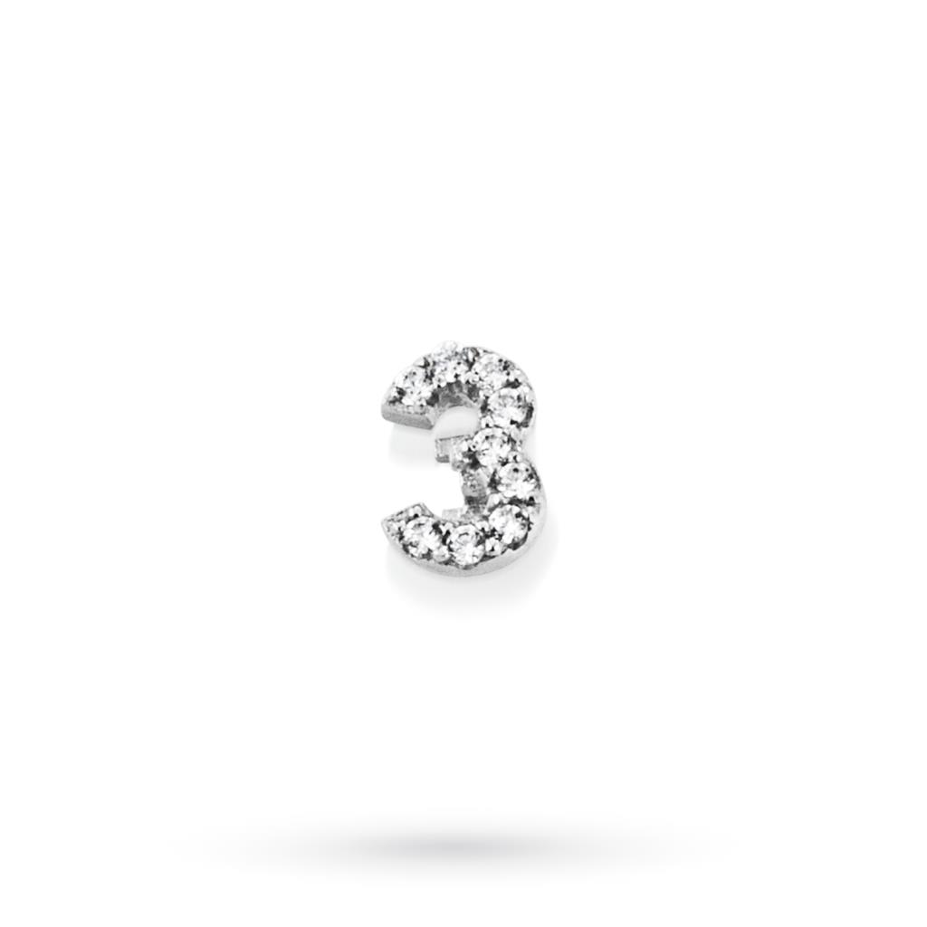 The jewel you are looking at is a component for the Letters collection by Marcello Pane with the number 3, made of white 925 silver and decorated with elegant white sapphire pave. Thanks to this, you can decorate and personalize bracelets, rings, earrings and necklaces from the same collection.