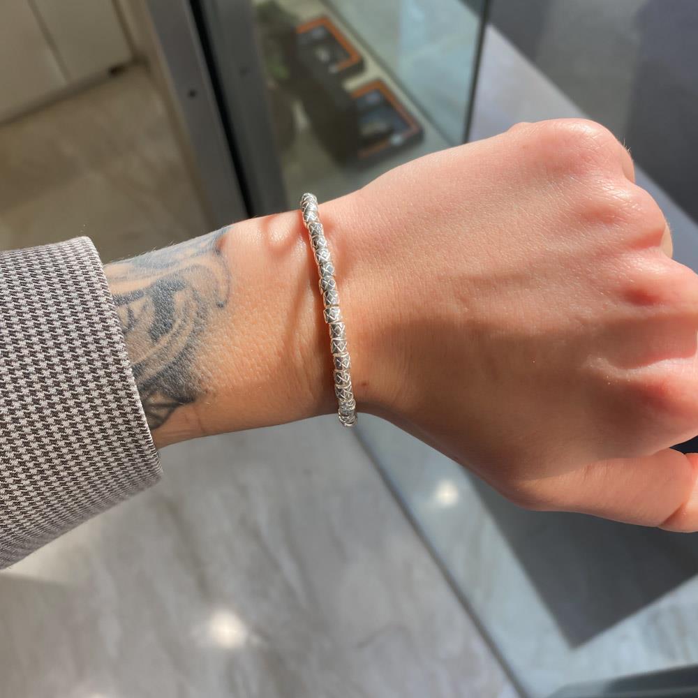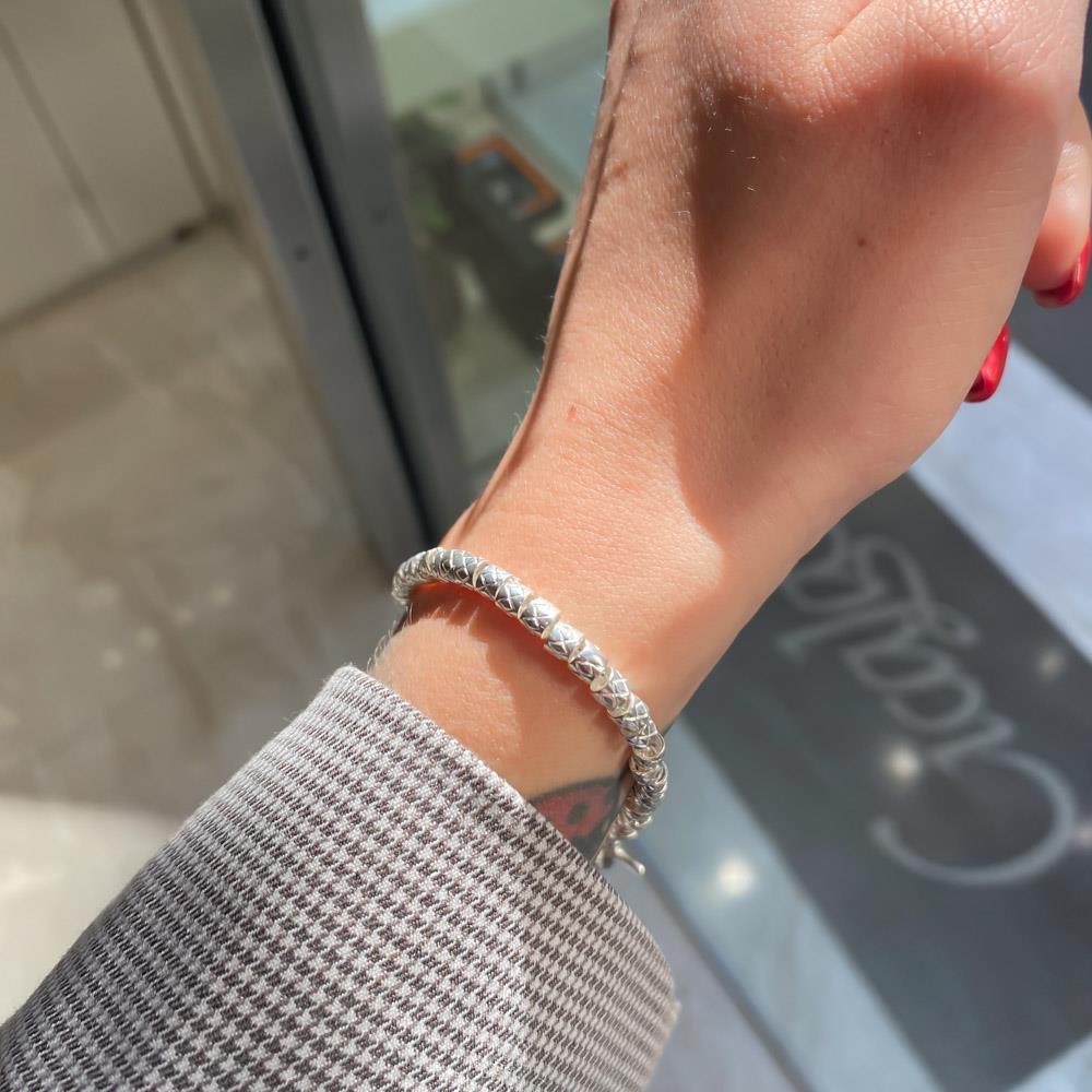 Available in three lengths, 15cm (children), 18cm (women) and 21cm (men), the Pigne Small bracelet fits perfectly on your wrist. The brand logo on the closure and on the silver plate certifies its authenticity and quality.