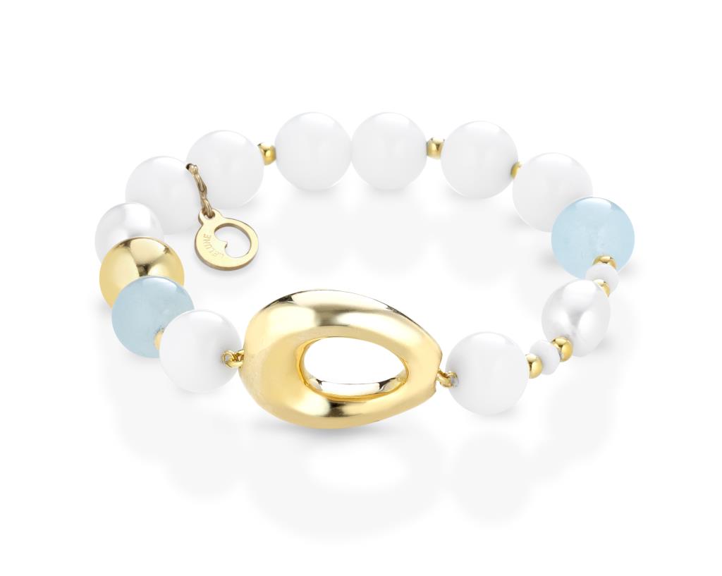 It is made with white agate, fresh water pearls, aquamarine and hypoallergenic silver.