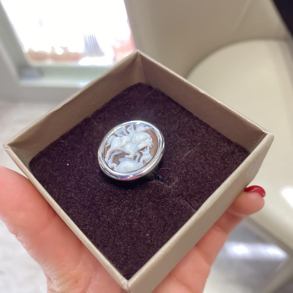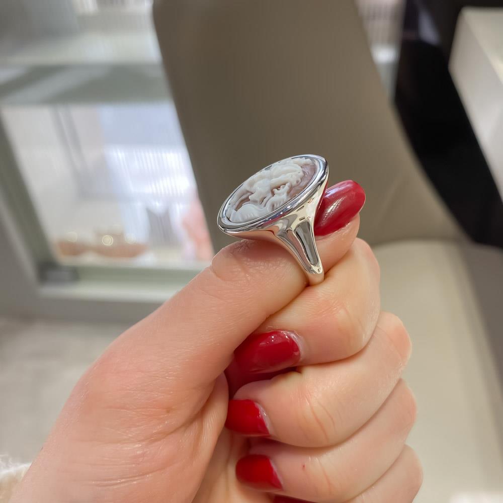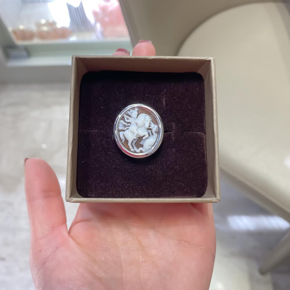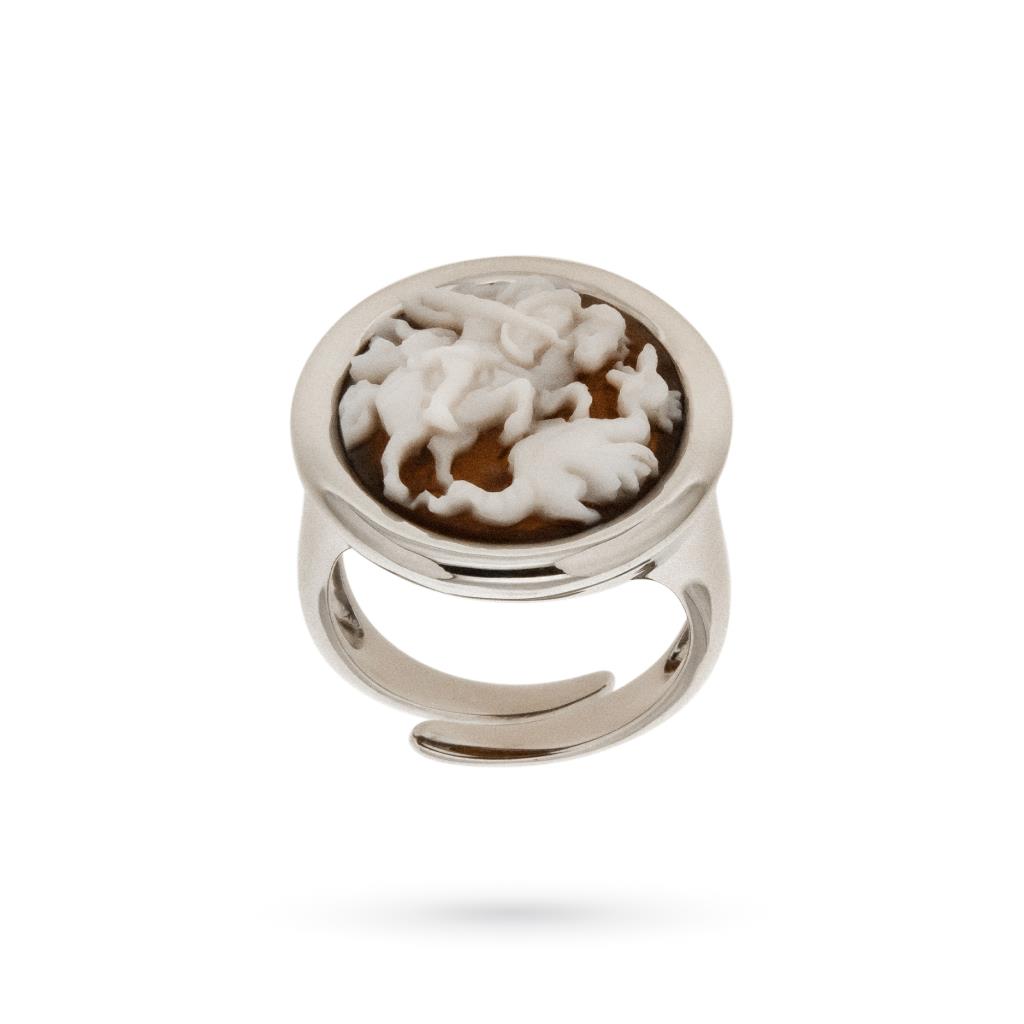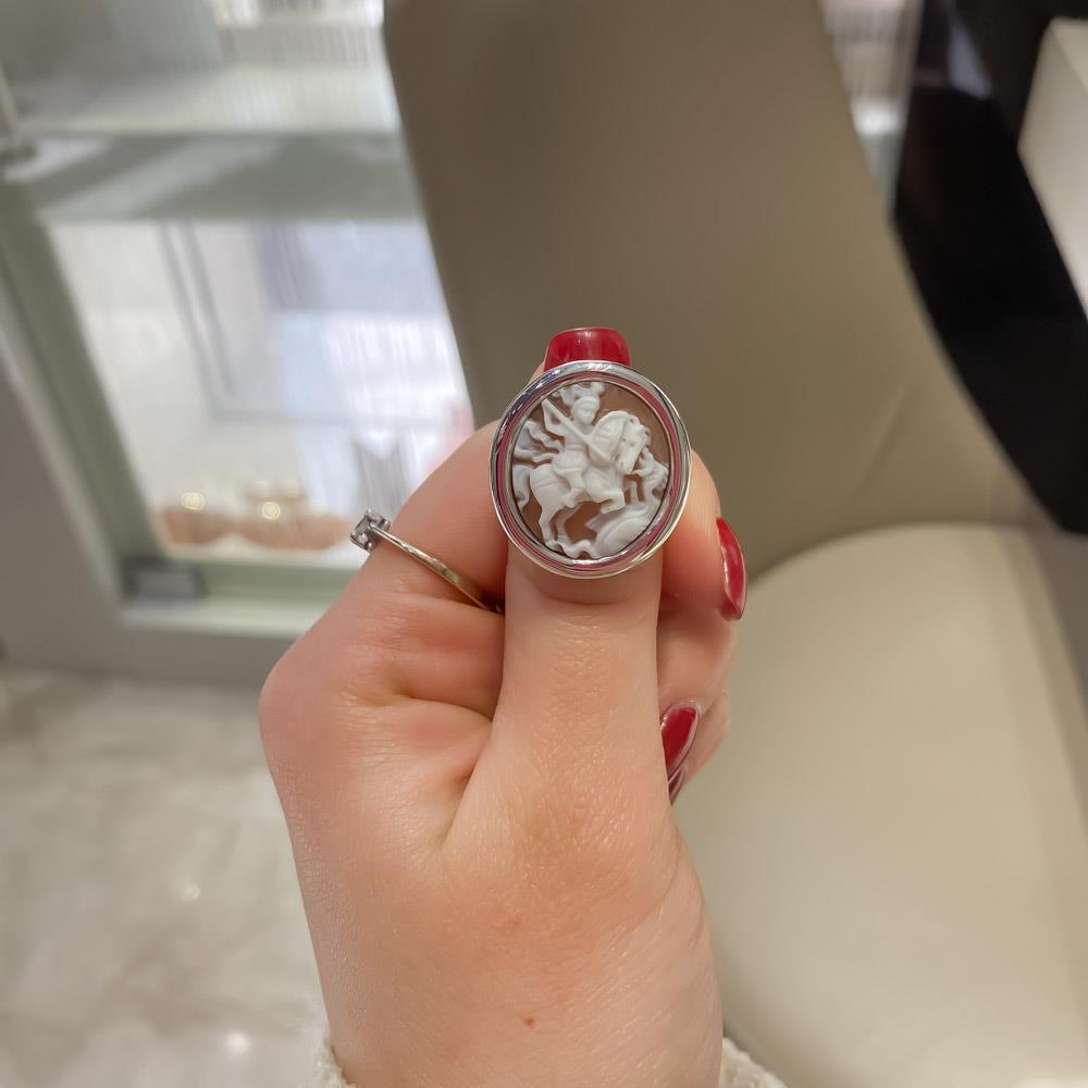 The Genoa ring engraved with San Giorgio killing the Dragon is a tribute from Cicala to all lovers of the city, but not only... This creation in fact symbolizes the strength of good (San Giorgio) against evil (the Dragon) . The setting of the ring is made of hypoallergenic nickel-free 925 silver to highlight the hand-engraved central cameo with a diameter of about 20 mm. Given the manual incision each ring is different from each other. The open shank allows you to adjust the size independently depending on which finger you want to wear it.