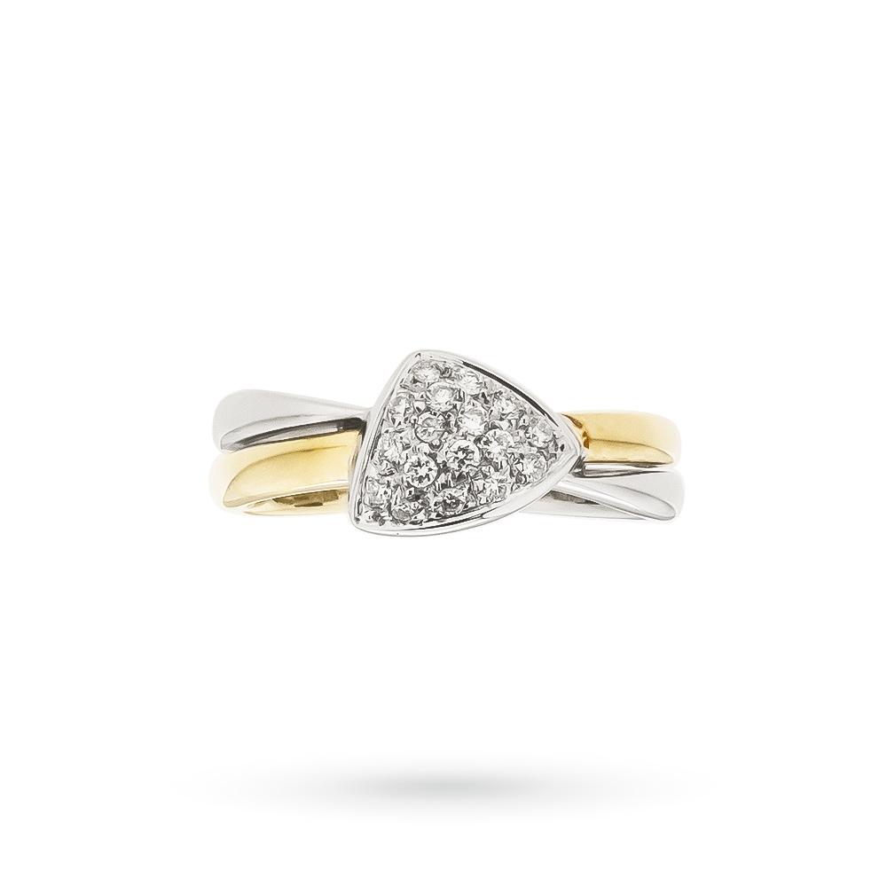 This unique ring features two intertwined bands crafted in 18kt (750/000) white and rose gold, symbolizing an everlasting and unbreakable bond. The elegant combination of materials and design makes it the perfect jewelry piece to celebrate love and connection between two people.