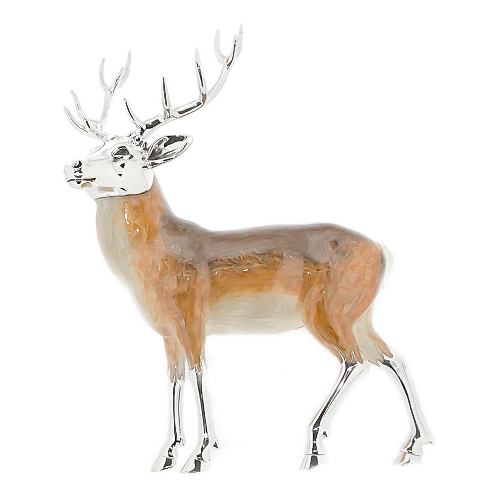This silver ornament, part of the Animals collection, represents an elegant large enameled Deer. Handcrafted with extraordinary attention to detail, this unique piece is perfect for enriching any environment such as your home or office. The fine material used is 925 Silver, ensuring durability and brilliance over time. The dimensions of the product are 110 × 30 × 144 mm, perfectly balanced to capture attention without being intrusive. Each Saturno creation is made in Italy and handcrafted, which means that details such as colors and enamels may vary slightly, making each piece truly unique. Cicala is an official Saturno dealer and offers a guarantee on every product. Shipping is always insured and free. Thanks to its timeless elegance, this ornament is also a splendid gift idea for any occasion, from Christmas to anniversaries, or to enrich your office with a touch of class. Item: ST120. Made in Italy.