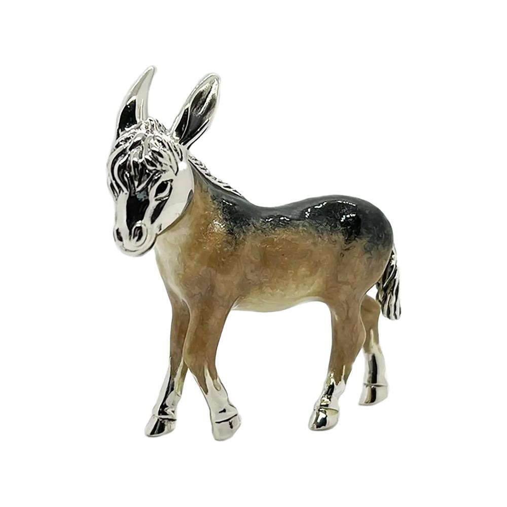 This silver ornament, part of the Animals collection, represents an elegant large enameled Donkey. Handcrafted with extraordinary attention to detail, this unique piece is perfect for enriching any environment such as your home or office. The fine material used is 925 Silver, ensuring durability and brilliance over time. The dimensions of the product are Length 20 mm, Height 54 mm, Width 57 mm, perfectly balanced to capture attention without being intrusive. Each Saturno creation is made in Italy and handcrafted, which means that details such as colors and enamels may vary slightly, making each piece truly unique. Cicala is an official Saturno reseller and offers a guarantee on every product. Shipping is always insured and free. Thanks to its timeless elegance, this ornament is also a splendid gift idea for any occasion, from Christmas to anniversaries, or to enrich your office with a touch of class. Item: ST111-1. Made in Italy.