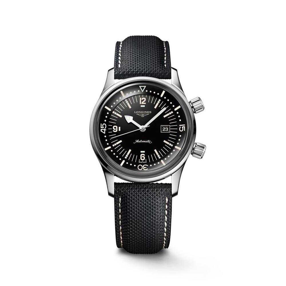 With the Longines Legend Diver Watch L3.774.4.50.0 Automatic Ø 42.00 mm, every moment becomes special thanks to its sophisticated design and exceptional performance. The heart of the Longines Legend Diver Watch L3.774.4.50.0 Automatic Ø 42.00 mm is the Automatic movement (self-winding mechanical movement with a frequency of 25,200 vibrations per hour and a power reserve of approximately 72 hours), accompanied by an L888 caliber and a power reserve of 72 hours. The round stainless steel case measures Ø 42.00 mm in diameter and 12.70 mm thick, perfect for those looking for a timeless style. With a weight of 87.6 grams and a water resistance up to 30 bar, the Longines Legend Diver Watch L3.774.4.50.0 Automatic Ø 42.00 mm is ideal to accompany you on every daily adventure. The glossy lacquered black dial, protected by a domed scratch-resistant sapphire glass with multi-layer anti-reflective treatment on the internal side, and the strap complete this watchmaking jewel. Every purchase comes with a 5 year warranty and you will also receive a special free gift with your order. Great for a significant birthday. Buy your Longines Legend Diver Watch L3.774.4.50.0 Automatic Ø 42.00 mm now and discover the luxury and quality that distinguish this extraordinary watch.