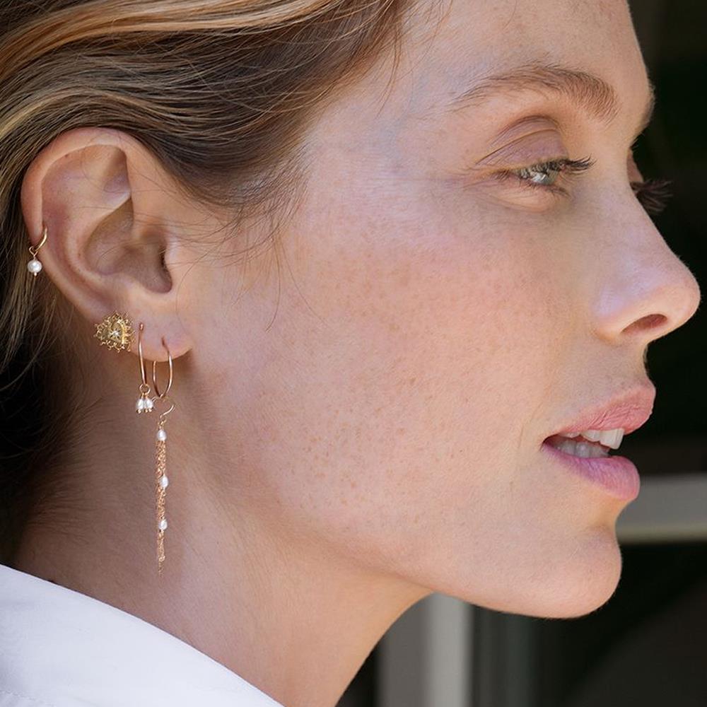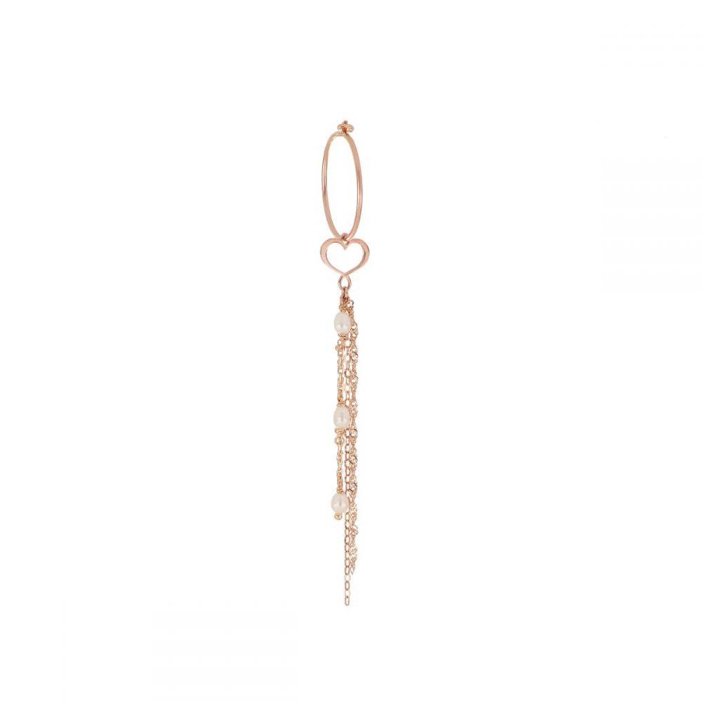 Maman et Sophie blue sapphire long earring ORZAF9MS 18kt rose gold. Single hoop earring made of 18k rose gold with a perforated Maman heart and a cascade of chains and a rosary of blue sapphires. The hoop measures 13mm in diameter and the earring is 58mm long overall. This jewel is a perfect gift idea for any occasion. The product is delivered with official Maman et Sophie box and guarantee. Cicala offers insurance coverage on the shipment of the jewel.
