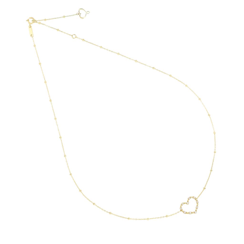 The heart measures 12.6mm in width and 10.3mm in height and features ten white diamonds on its surface.