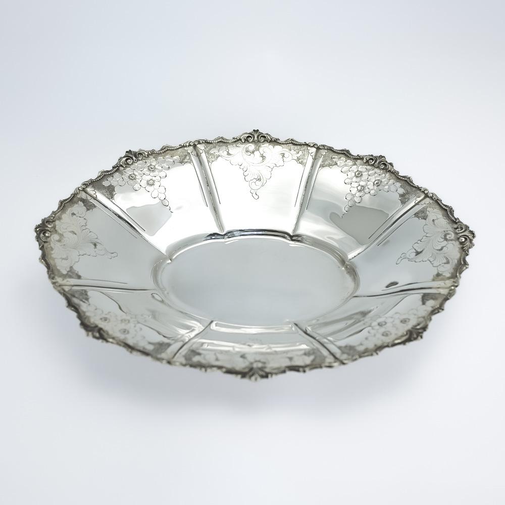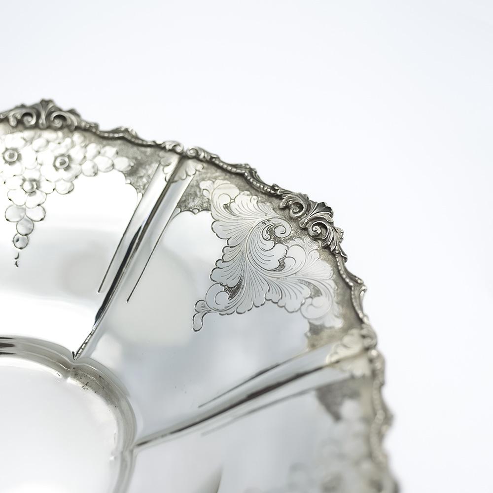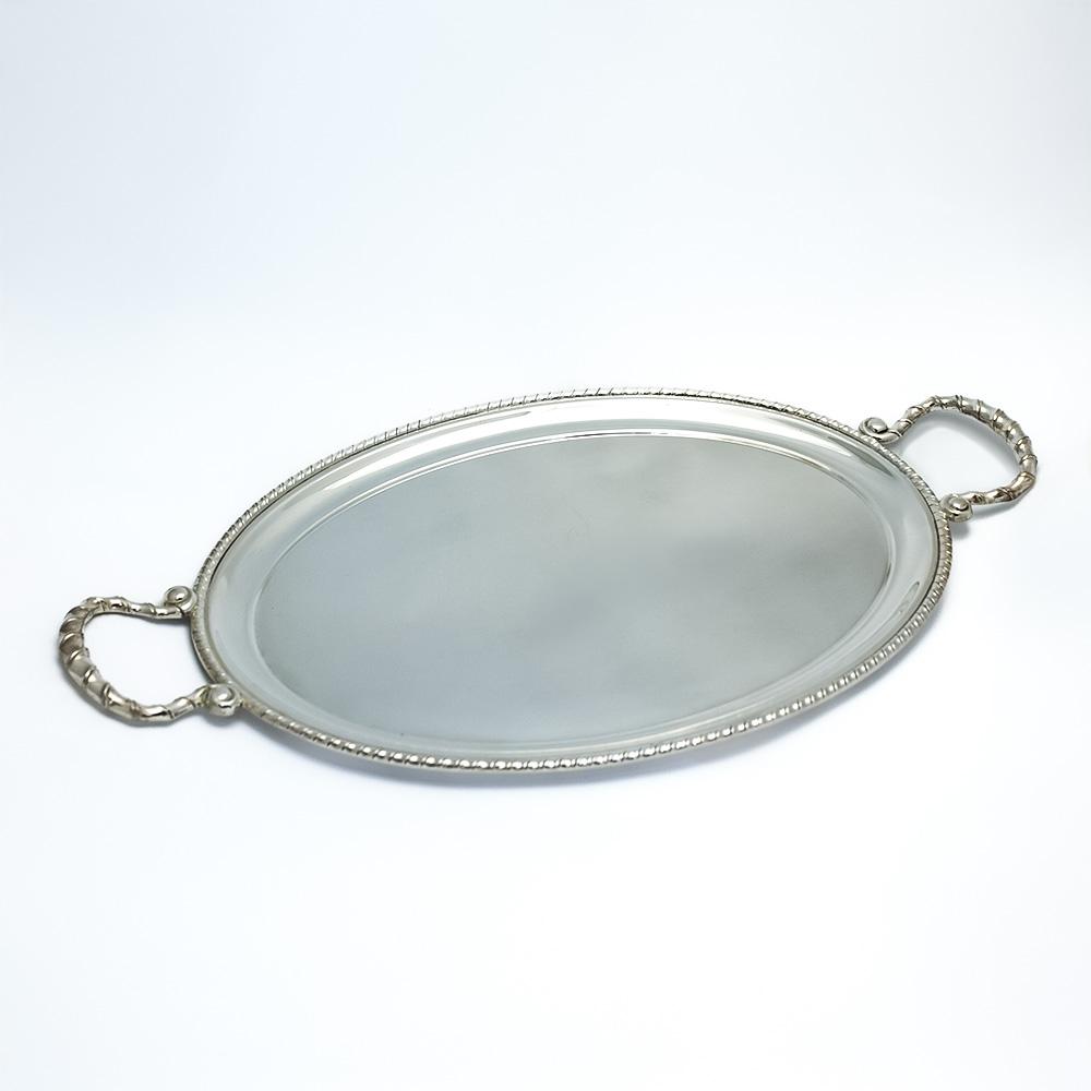 The tray’s dimensions (30 x 40 cm) and the overall size with handles (30 x 53 cm) make it perfect for serving in style at formal dinners or as a decorative accent in classic or modern interiors. Its timeless aesthetic and artisanal quality make it a must-have for collectors and lovers of fine silverware.