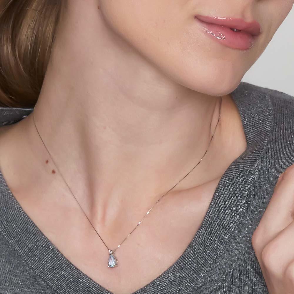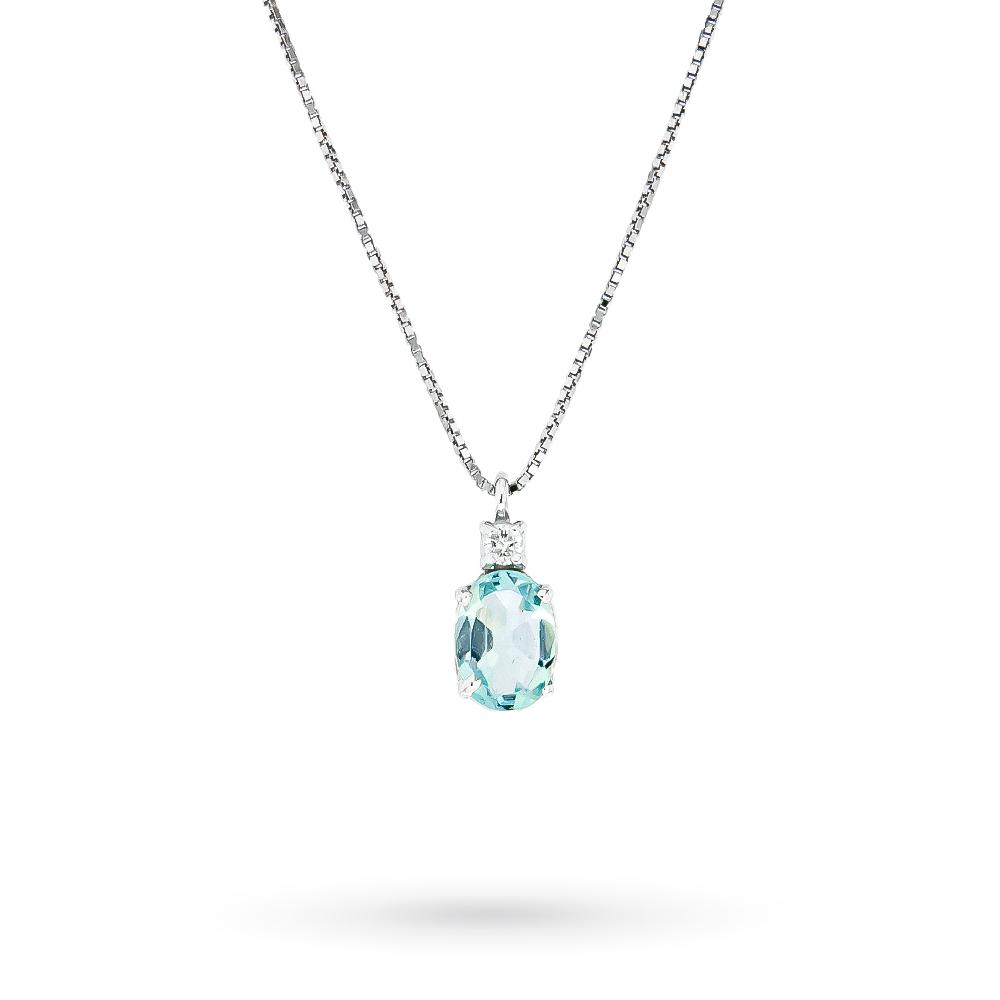 At the center of the chain is a pendant with an oval cut aquamarine of 0.40 ct with a diamond in the upper part of 0.02 ct G color VS.