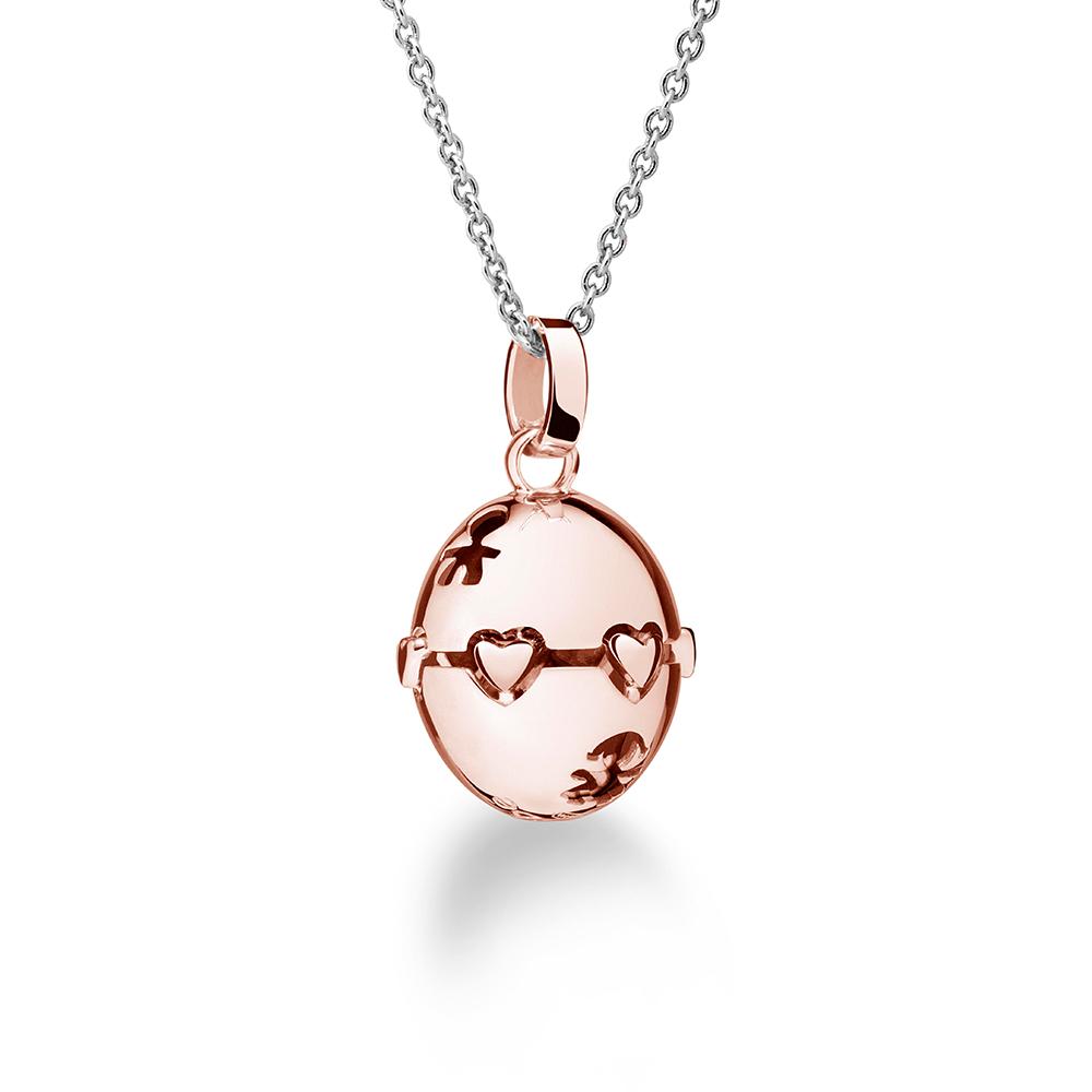 This necklace with pendant promotes expectancy and accompanies the mother during pregnancy. The pendant is made of 925 pink silver and is part of the SuonAmore collection. It comes with perforated shapes and small hearts decoration in high relief and the rolò chain in silver. Customizable with crowns from the same collection.