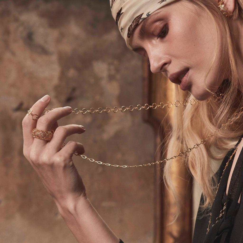 Its enveloping and sculptural shape recalls the wings of the phoenix, a symbol of rebirth and inner strength. The ring has a maximum height of 29 mm and the circumference is adjustable, adapting comfortably from size 13 to 15. An impactful jewel, ideal for those who want to wear an accessory full of meaning, perfect as a gift idea for any occasion, from a personal celebration to an important gift.
