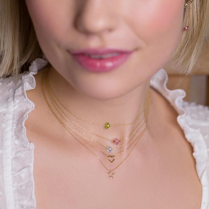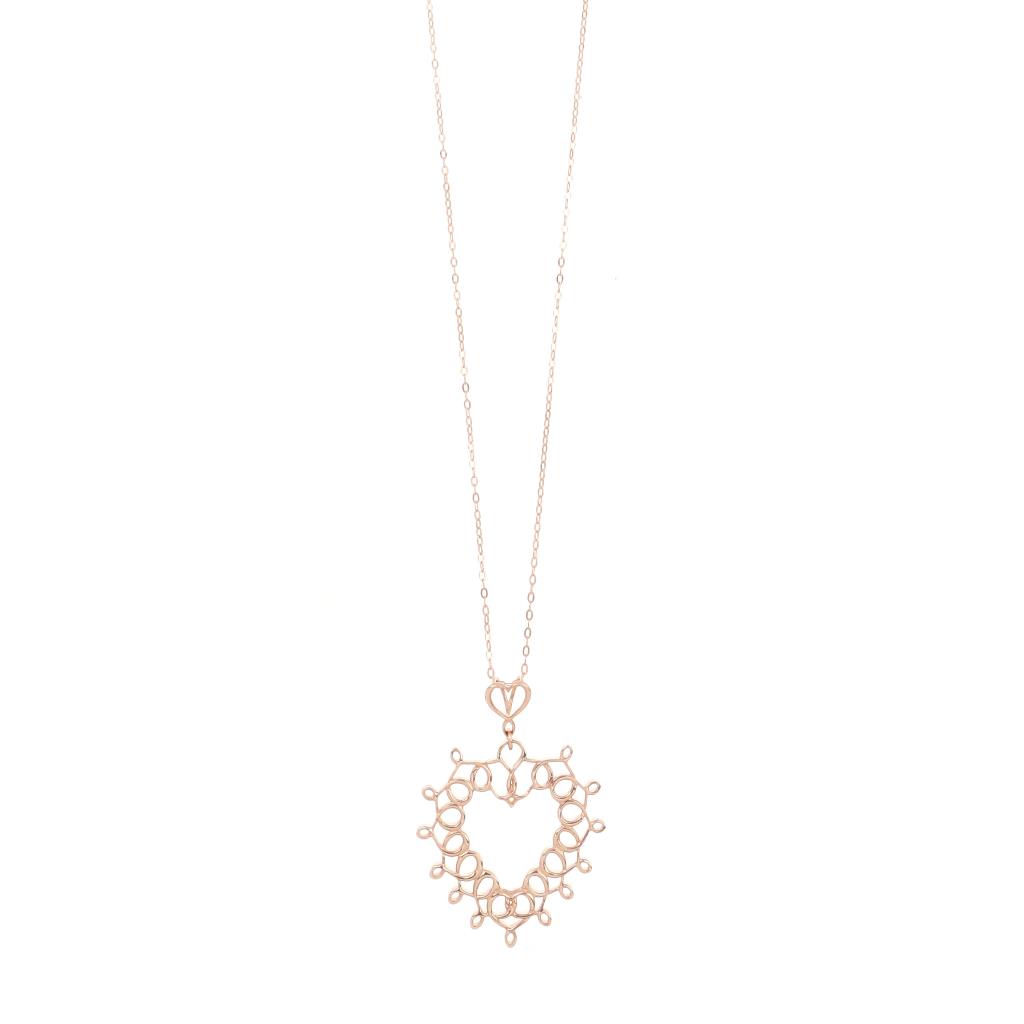 Necklace in 18k yellow gold with pendant red naked heart made with red garnet stone.