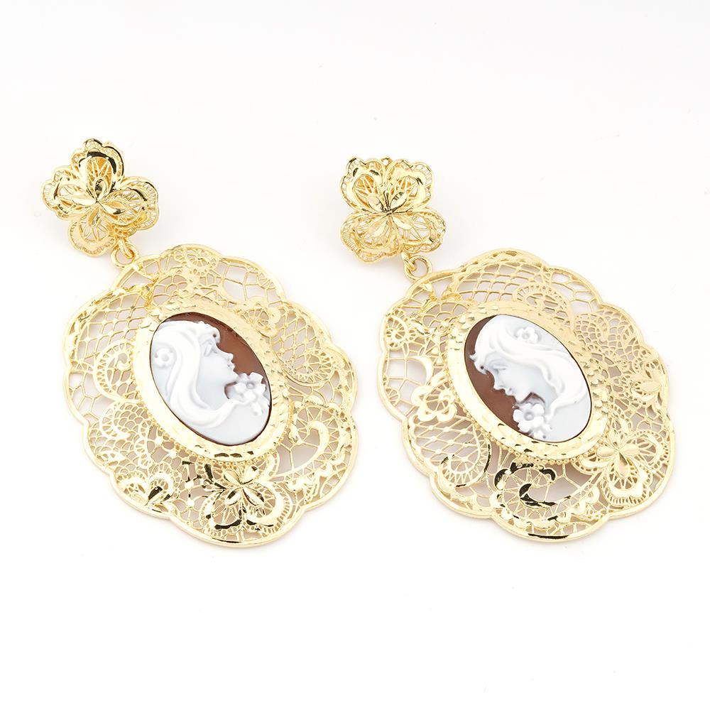 A large cameo with engraved faces is set in the center of the creation.