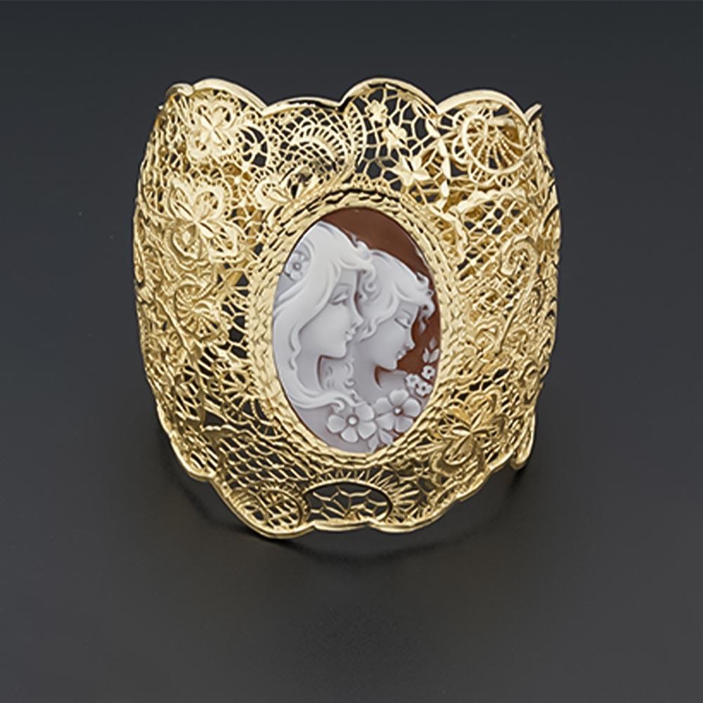 Rigid golden silver bracelet large cameo faces 40mm
