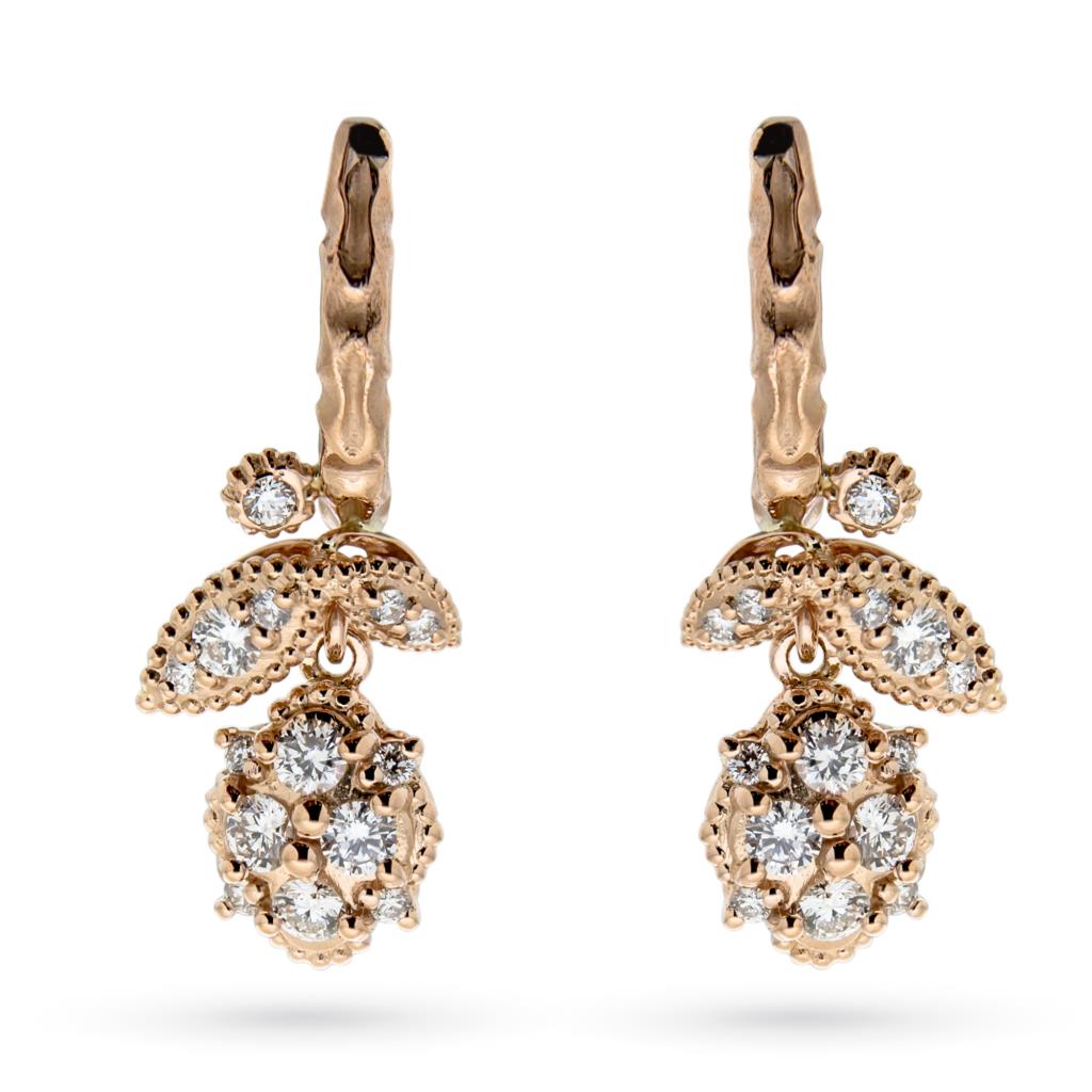 Rose gold pearl flower earrings with diamond petals 0.82ct. These pearl and diamond earrings are a Coscia creation. What makes these earrings superlative are the rare natural pink pearls. A true masterpiece of nature housed in an elegant setting that manages to give a unique refinement to the jewel. Coscia is a brand famous for creating pearl jewelry. This little masterpiece has a pink pearl in the center and 0.82ct brilliant cut diamonds, color G, clarity VS. Coscia jewels are accompanied by a gift box and guarantee. The jewels are elegantly delivered in Cicala-branded gift paper. The Cicala jewelery shop offers insurance coverage on the shipment of the jewel.
