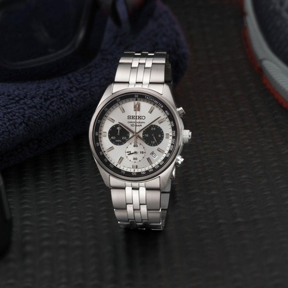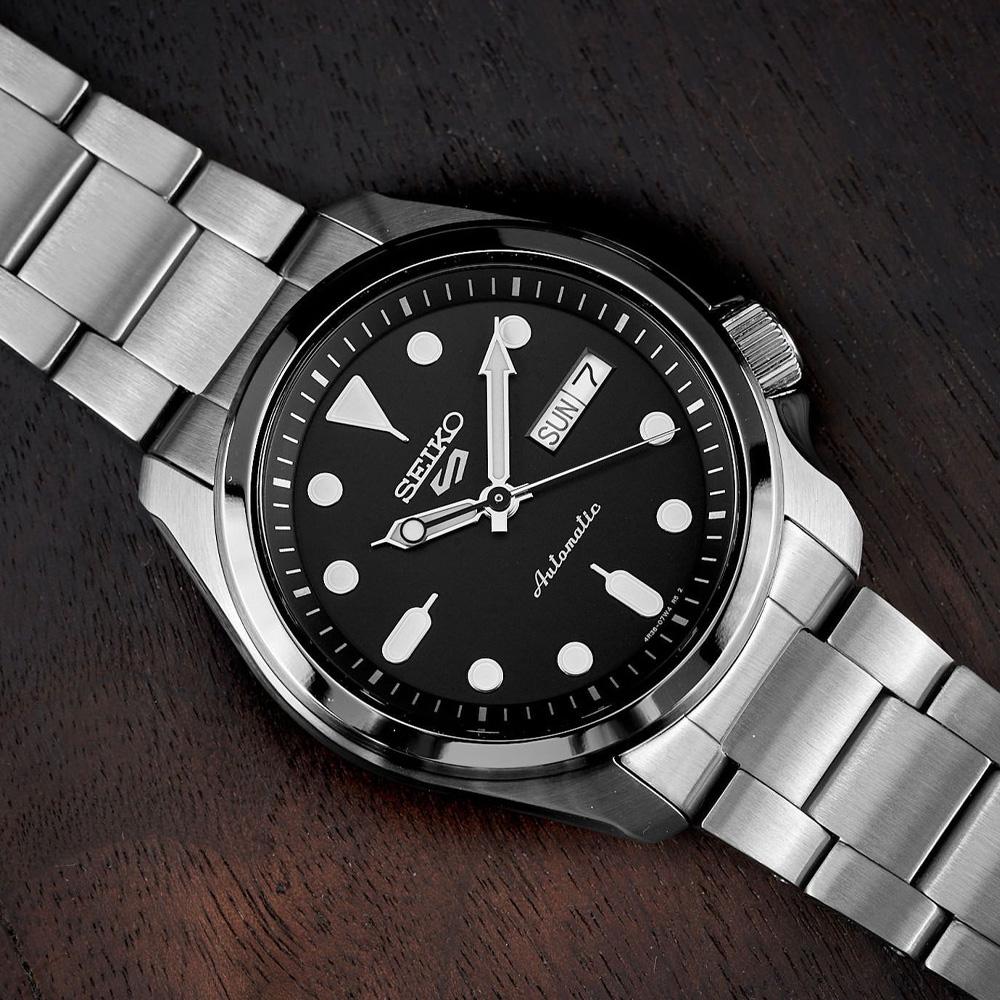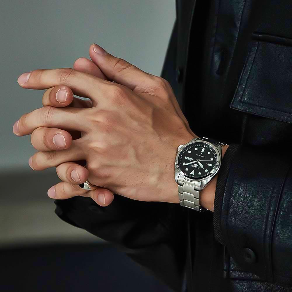 The new SEIKO 5 SPORTS collection celebrates originality and diversity of styles. With this sporty design watch with a superb black dial, you can proudly show off your style! Made entirely of stainless steel, this timepiece is equipped with a 3-hand automatic movement and features a day and date display at 3 o'clock and the new SEIKO 5 SPORTS collection logo at 12 o'clock.
