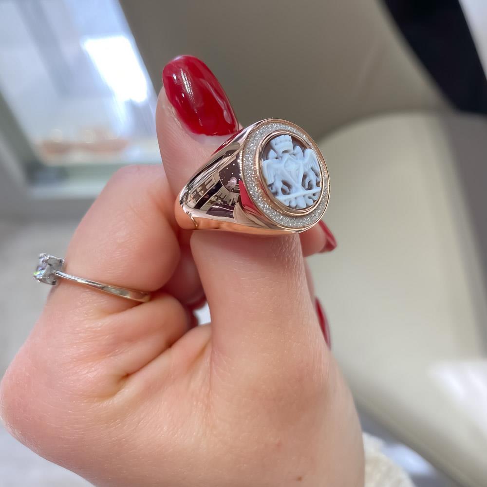 Genoa Ring Cameo Coat of arms of the city rosè glitter