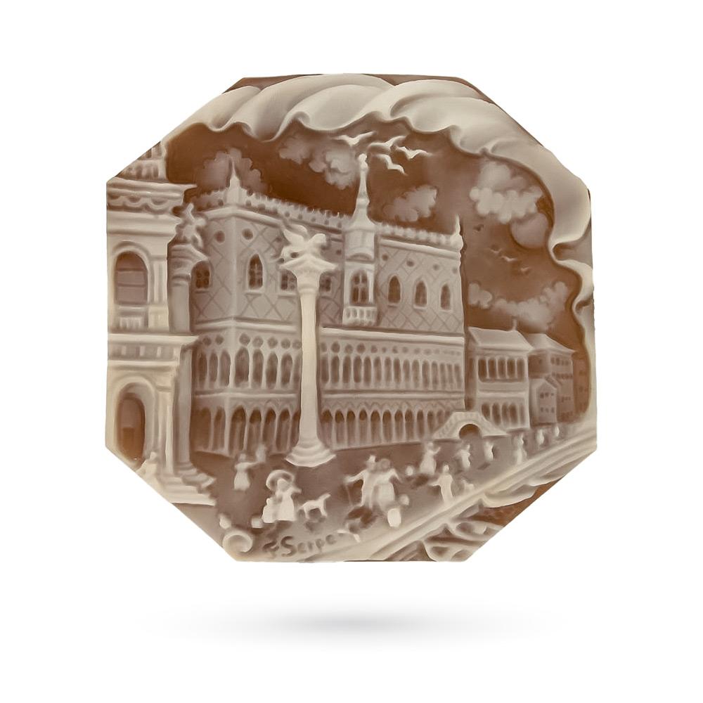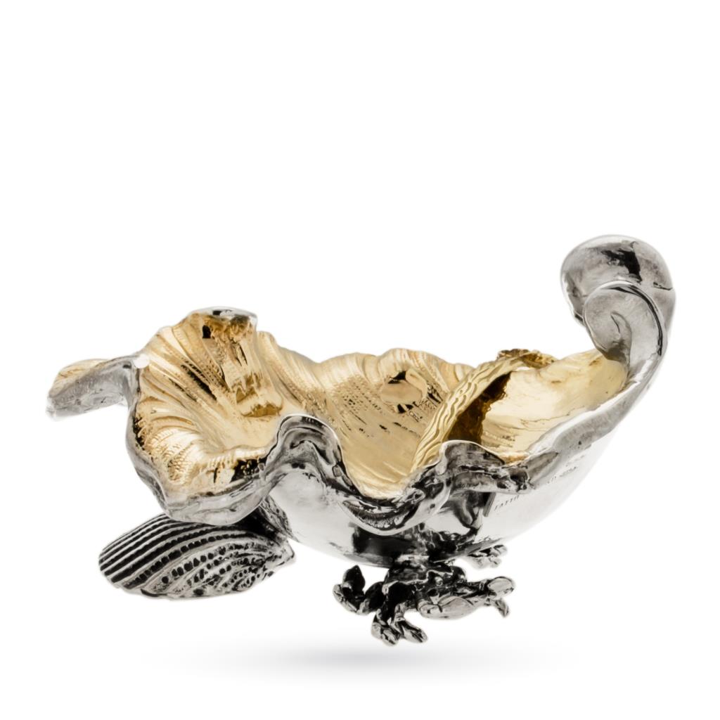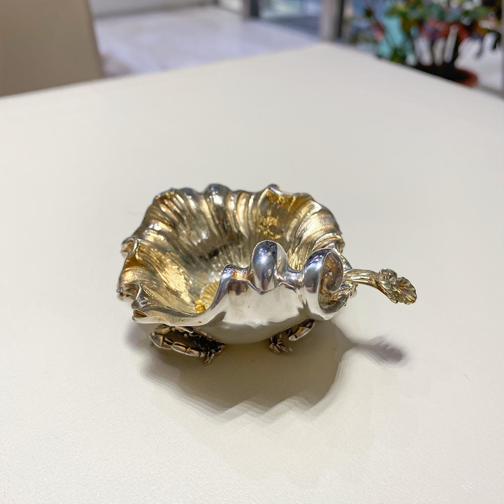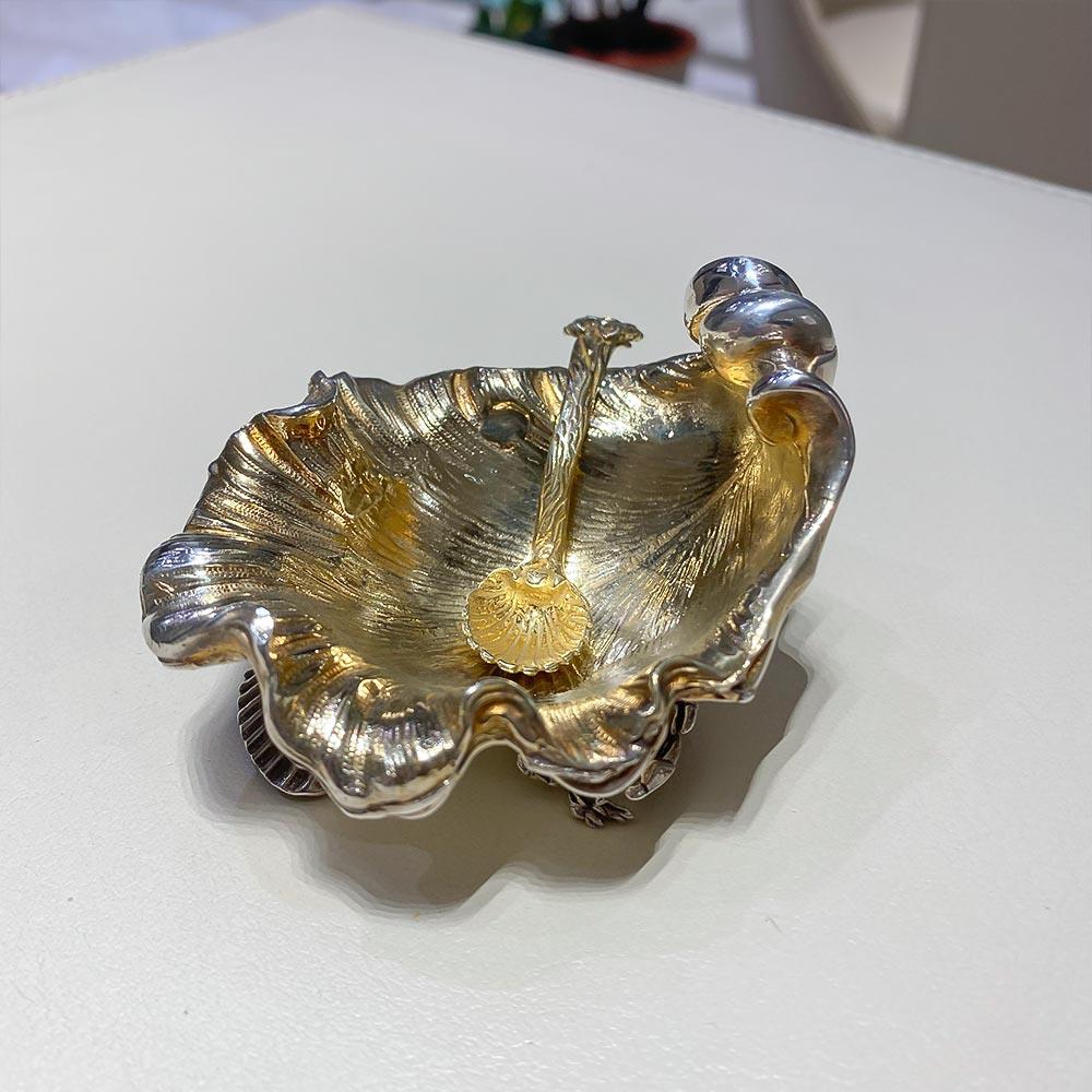 It has the shape of an oyster and is embellished internally with an elegant gilding.