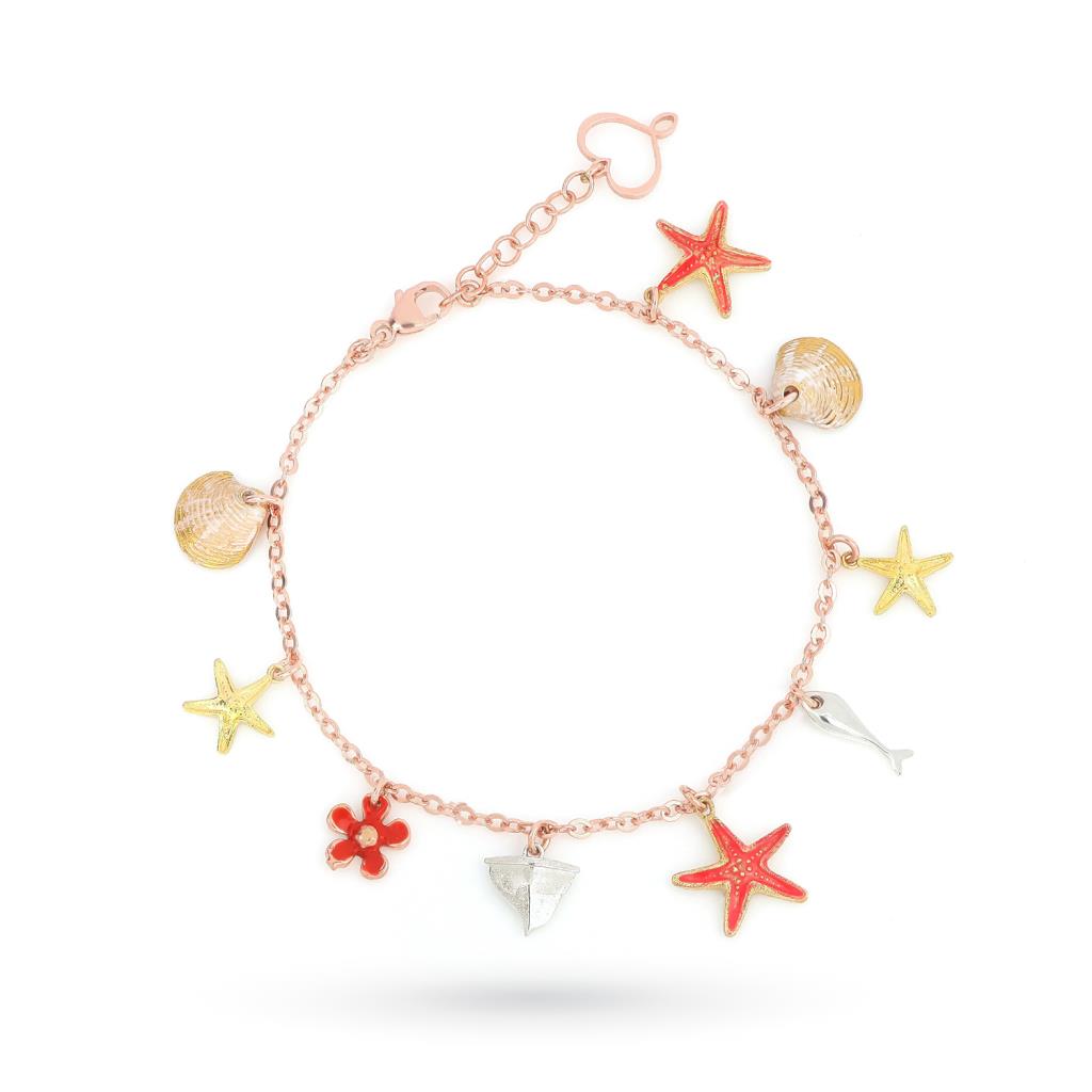 The jewel you are looking at is a single earring from the Maman et Sophie brand in a 925 silver with pink gold plating and colored stones. Central a red coral pendant.