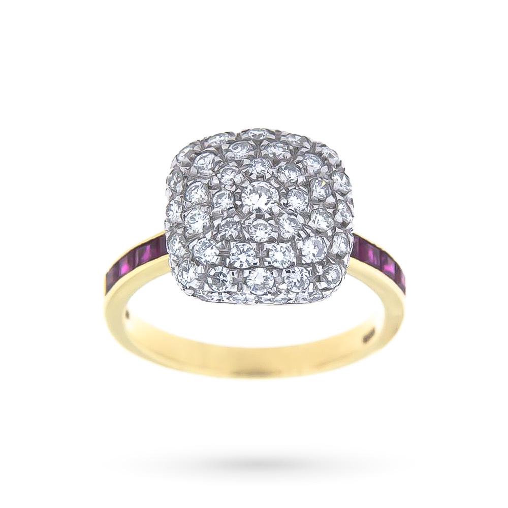 It is made with a soft 18kt (750/000) yellow gold chain and with some segments, always chained, in 18kt (750/000) white gold embellished with round brilliant cut diamonds.