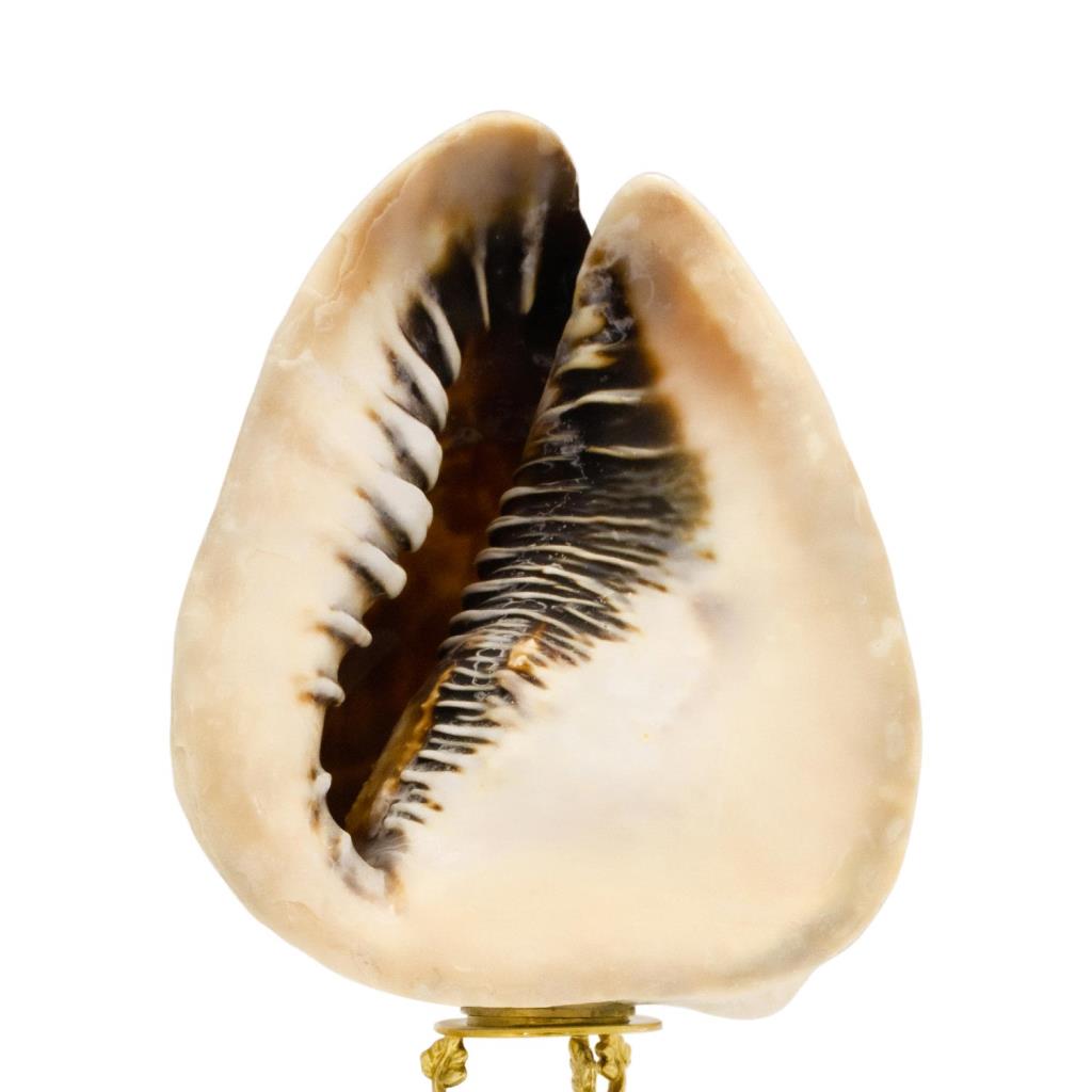The seashell, chosen for its connection to the sea, is placed on an elegant brass stand depicting three tritons, giving the composition an additional reminder of the marine world. A light bulb is housed inside the structure, allowing this ornament to also be used as a lamp, diffusing a warm and soft light into the room, ideal for creating a cozy and relaxing atmosphere at night.