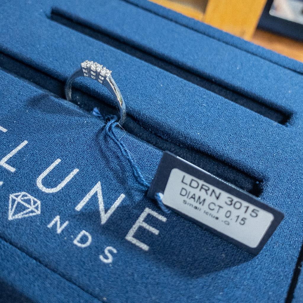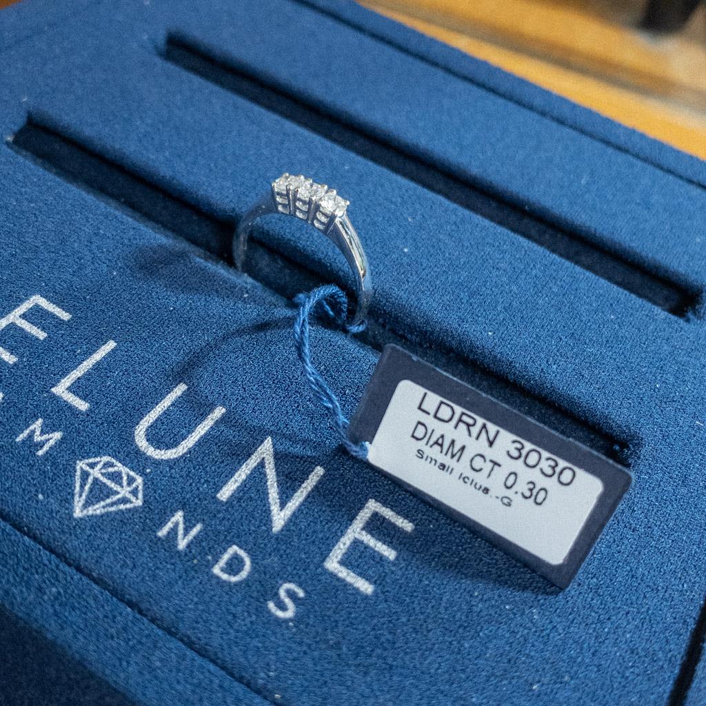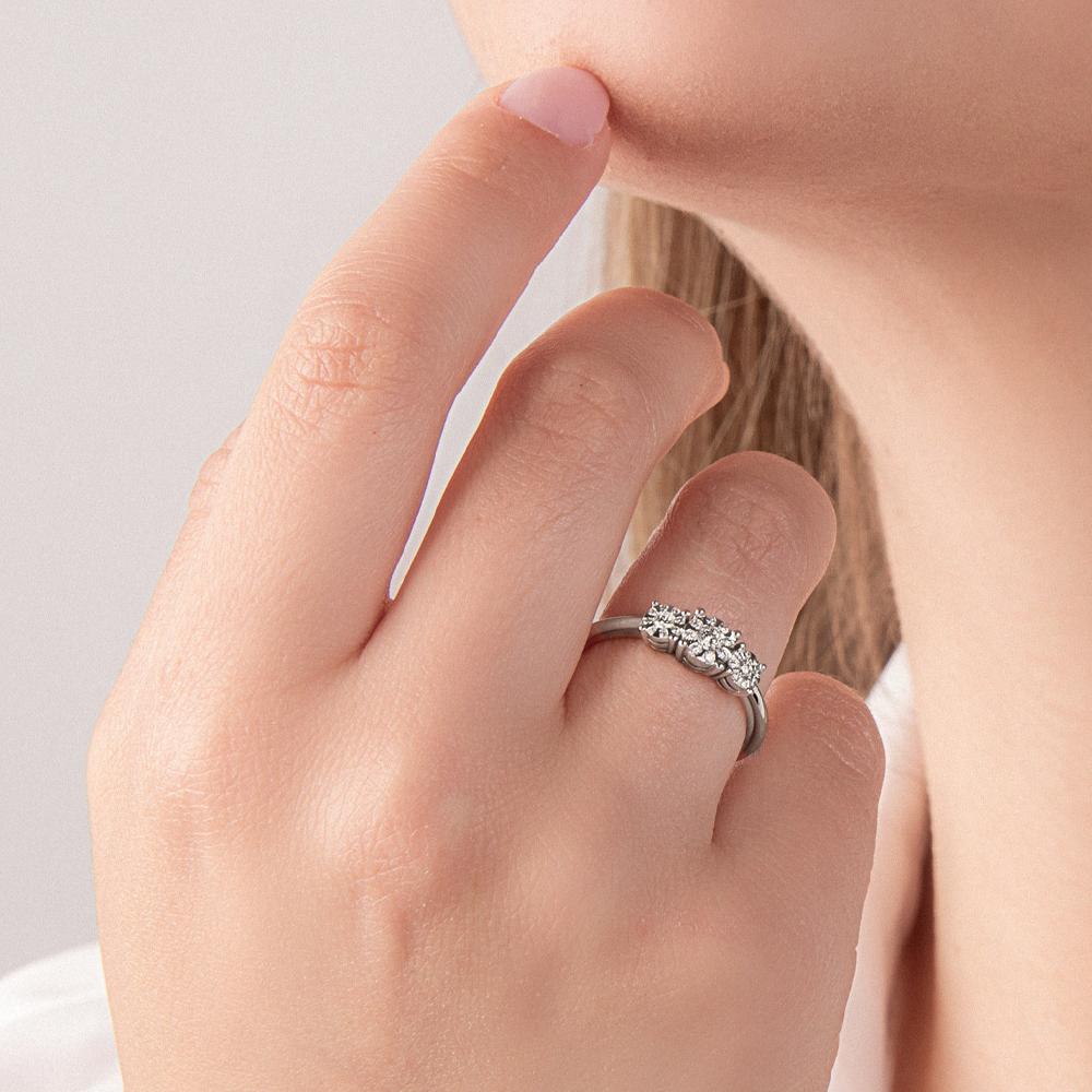 In the terminal part of the three wires there are three brilliant cut diamonds (total 0.16 ct), color G and clarity grade VS. The modern design of the ring gives it elegance, style and refinement.