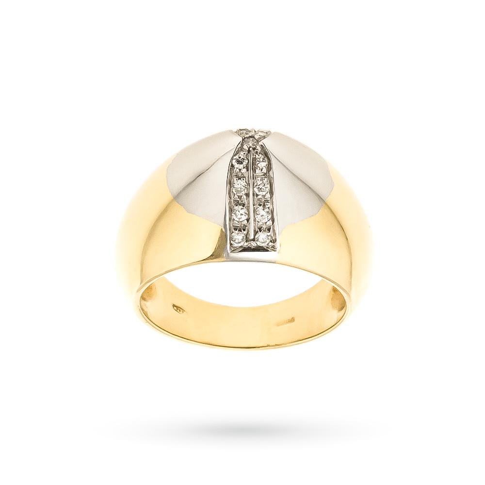 Vintage 18kt yellow and white gold band ring with diamonds - Timeless elegance Made in Italy