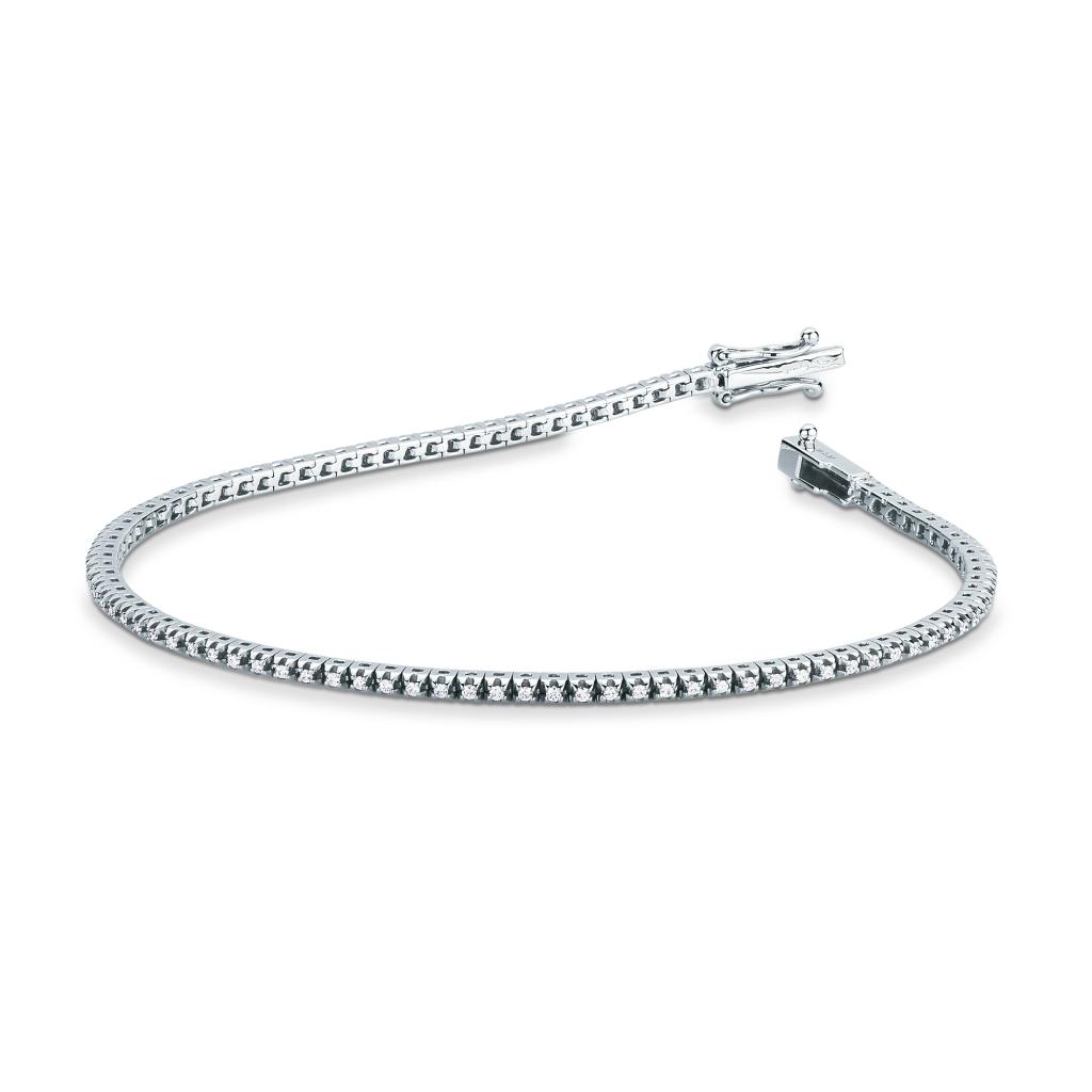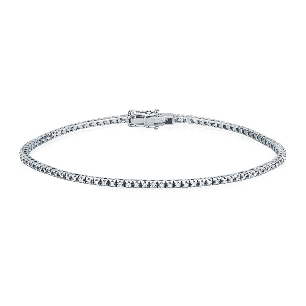 Diamond Tennis Bracelet by Mirco Visconti. This bracelet is crafted from 18kt white gold, hypoallergenic and nickel-free. The tennis bracelet features a sturdy and durable setting, perfect for everyday wear. The practical pressure clasp with two external safety locks ensures secure wear. Length: 17.5 cm. The diamonds are natural, ethically sourced, and brilliant-cut.