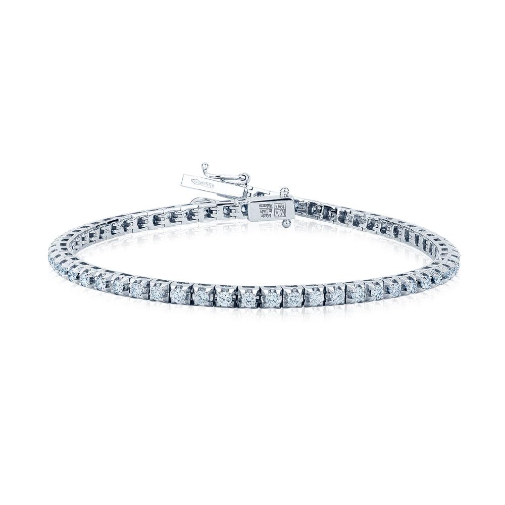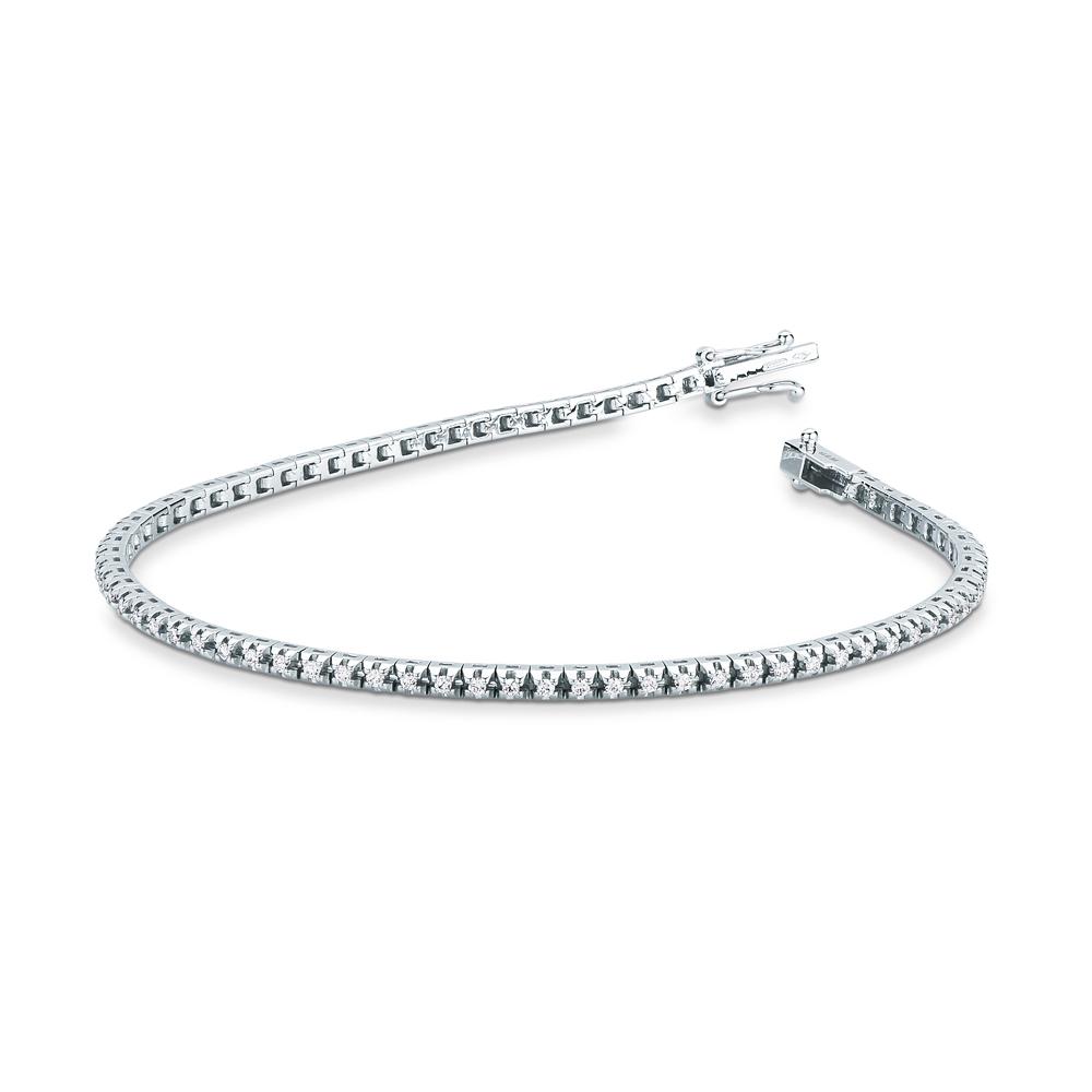 Diamond Tennis Bracelet by Mirco Visconti. This bracelet is crafted from 18kt white gold, hypoallergenic and nickel-free. The tennis bracelet features a sturdy and durable setting, perfect for everyday wear. The practical pressure clasp with two external safety locks ensures secure wear. Length: 17.5 cm. The diamonds are natural, ethically sourced, and brilliant-cut.