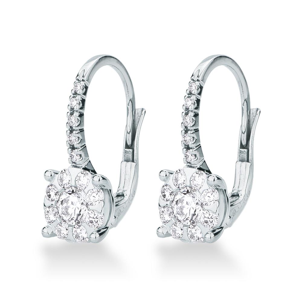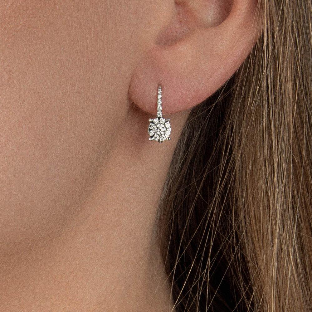Mirco Visconti's white gold and multi-stone diamond ear stud earrings represent a refined expression of true Made in Italy craftsmanship. Available on Cicala, these exclusive earrings embody the highest quality craftsmanship and timeless luxury of Italian jewelry. Crafted from hypoallergenic, certified 18kt white gold, they boast excellent-quality natural round brilliant-cut diamonds, enhancing the jewel's brilliance and prestige.
