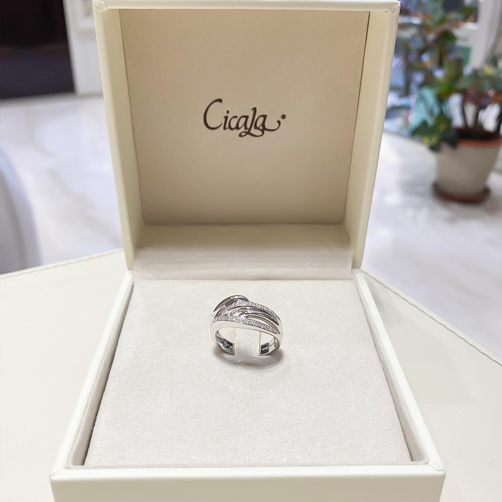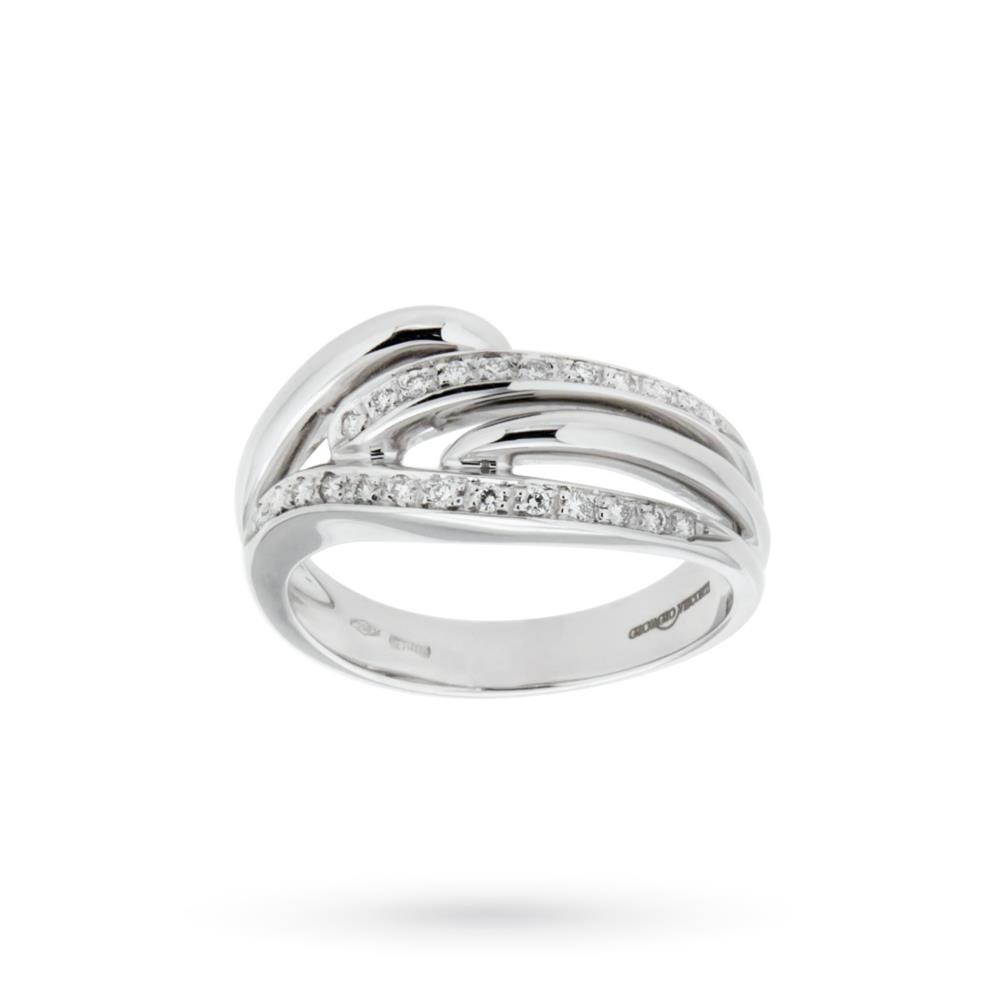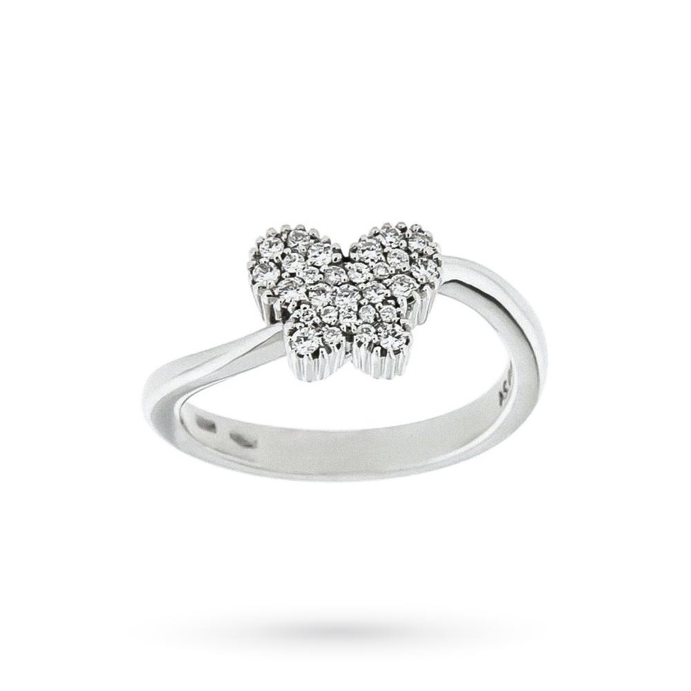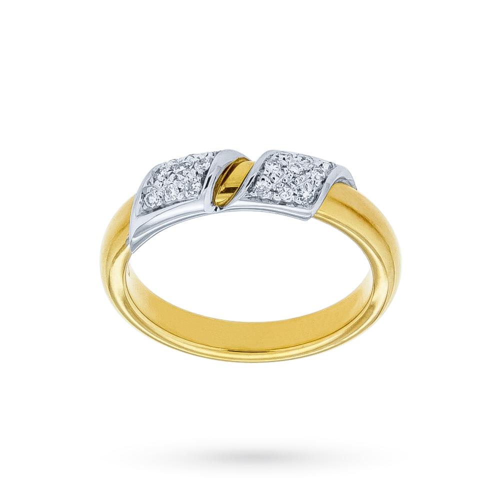 White gold ring with diamond bow 0.14ct. The jewel you are looking at is an 18kt (750/000) white gold ring that represents a bow with diamond pavé. It is a discreet and elegant ring, perfect for everyday wear. The size is 14. (17.20mm) The ring can be customized with an engraving inside the shank and it is possible to tailor it to the desired size. The item is accompanied by an elegant original brand packaging and a guarantee of authenticity of the materials.