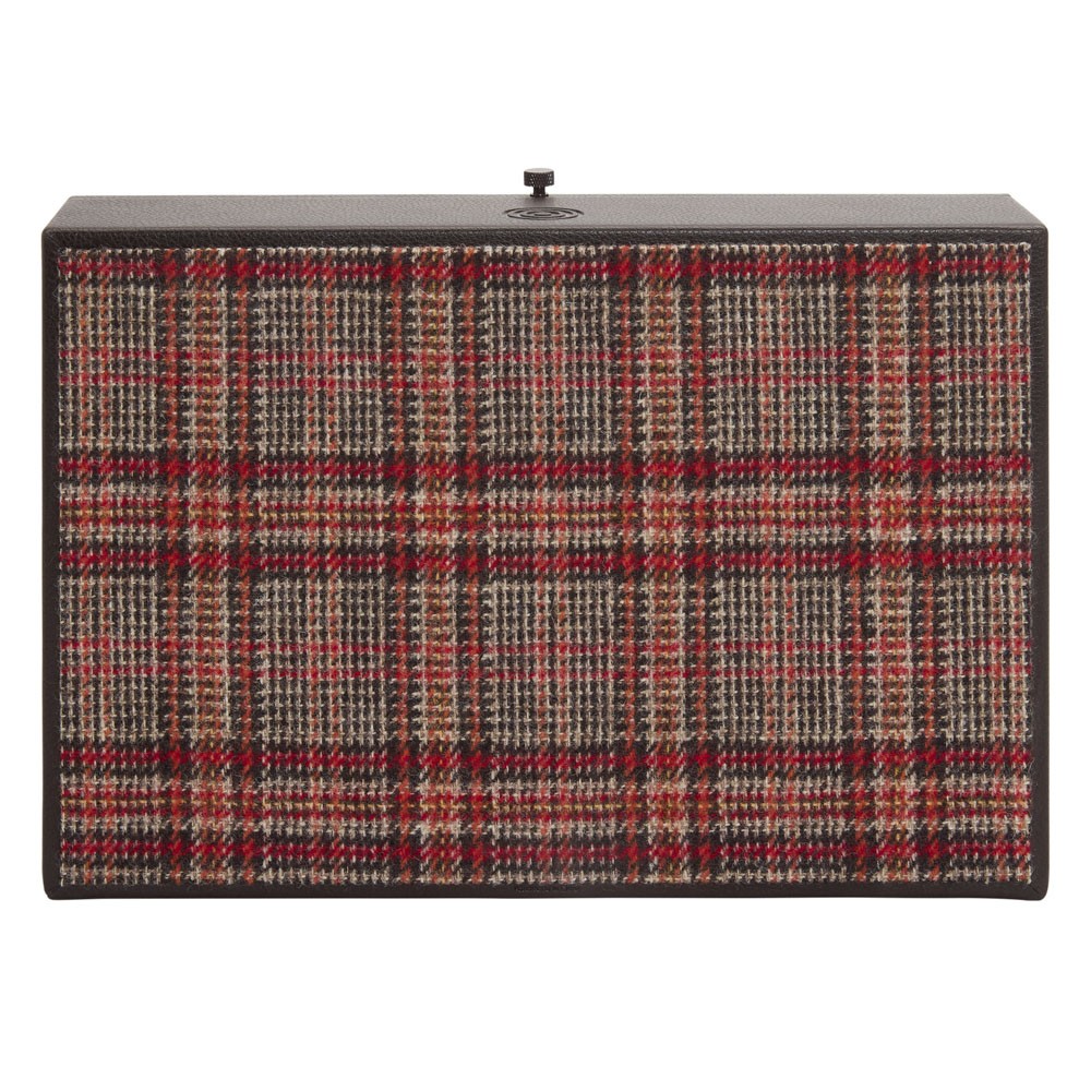 WOLF x WM Brown 4 Piece Watch Accessory Box - Color: Brown. Product dimensions (in): 12 x 8.5 x 3.25. Weight (lbs): 4,8. Brand: Wolf. The WM Brown x WOLF collaboration is here! Known for his impeccable taste in fashion and love of watches, founder and editor of WM Brown Matt Hranek has partnered with WOLF to craft a collection of products made for the modern man. The WM Brown Watch Accessory Box hand crafted with a brown leather exterior and ‘Negroni tweed’ lining gives storage for 4 watches on suspended cuffs as well as two useful compartments for watchstraps and watch tools or your favourite pair of cufflinks. Material: Brown Pebble Vegan Leather. Negroni Wool Lining.