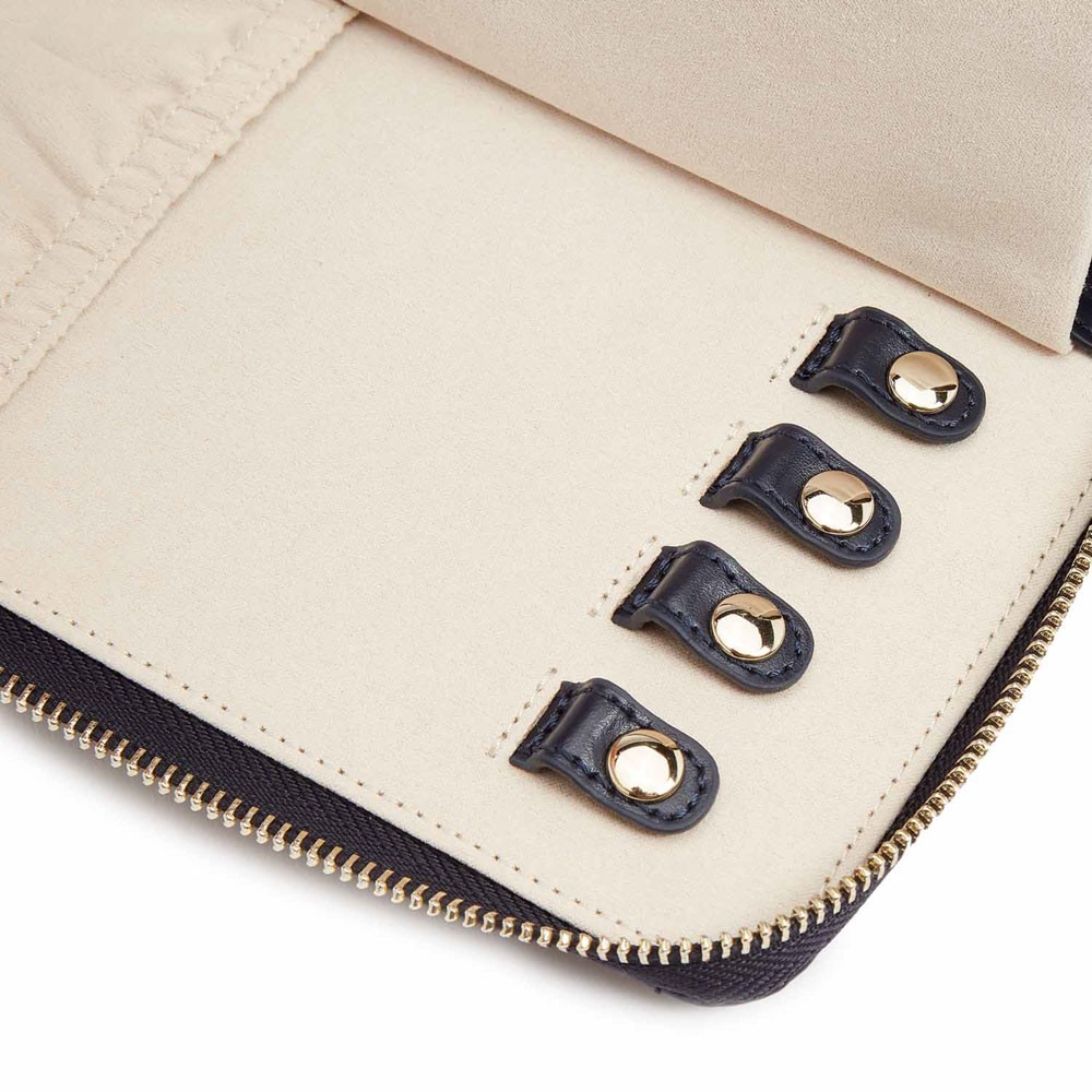 Maria Jewellery Portfolio - Color: Navy. Product dimensions (in): 8.75 x 5.25 x 1.25. Weight (lbs): 0,5. Brand: Wolf. A new classic is born with Maria. Pure sophistication with clean lines and just the right amount of detail. Maria is for the traveler in love with cities they’ve never been to, and people they’ve never met. Our first complete travel collection wrapped in rich smooth leathers and stunning gold accents. Take Maria wherever you go while keeping your jewellery in place and creating a travel style that’s just for you – business, leisure, and everything in between. Material: Vegan Leather.