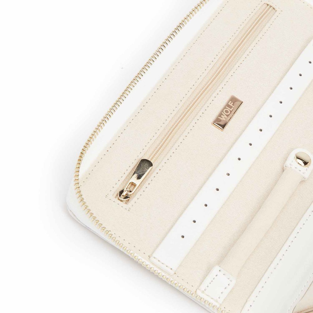 Maria Jewellery Portfolio - Color: White. Product dimensions (in): 8.75 x 5.25 x 1.25. Weight (lbs): 0,5. Brand: Wolf. A new classic is born with Maria. Pure sophistication with clean lines and just the right amount of detail. Maria is for the traveler in love with cities they’ve never been to, and people they’ve never met. Our first complete travel collection wrapped in rich smooth leathers and stunning gold accents. Take Maria wherever you go while keeping your jewellery in place and creating a travel style that’s just for you – business, leisure, and everything in between. Material: Vegan Leather.