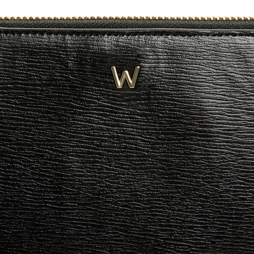 W Laptop Sleeve - Color: Black. Product dimensions (in): 13 x 9.4 x 0.8. Weight (lbs): 1. Brand: Wolf. The ‘W’ collection; sleek, black, embossed grain leather, with touches of gold across leather wallets, business accessories and a dopp kit. Pure sophistication comes from classic design with WOLF’s trademark attention to detail. Carry your laptop in style with the W Logo laptop sleeve, containing 4 credit card slots, an exterior zip with a WOLF branded puller, and RFID protection to keep your personal data safe. The exterior is made from sustainably sourced embossed cow leather, with lining made from recycled plastic bottles. Material: Sustainably sourced genuine leather and lining made from recycled plastic bottles.