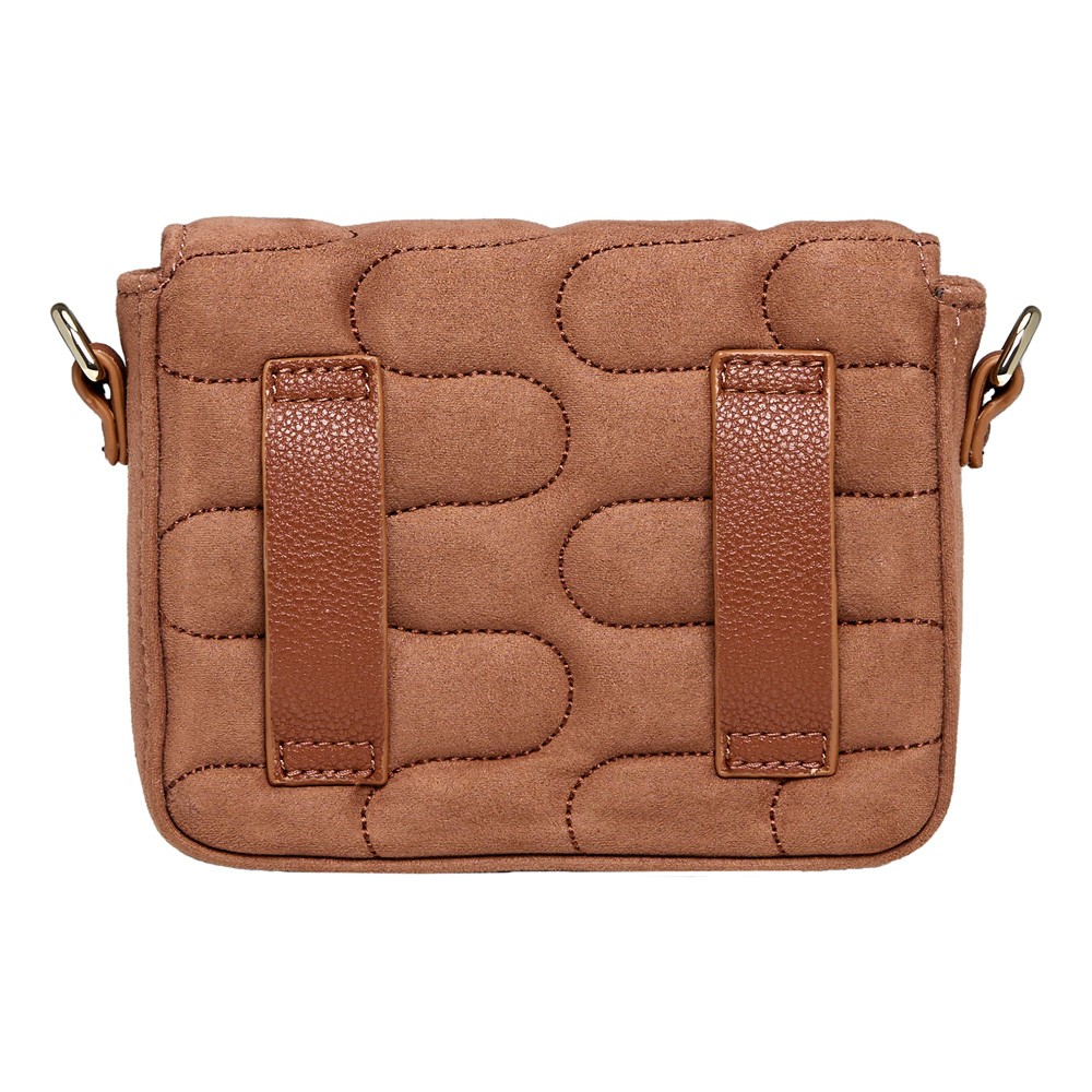 Mini bag with detachable long adjustable strap, wristlet and coordinating patterned scarf features a flap over opening with magnetic closure and gold finish hardware. Inside the main compartment that is split into two equal segments, find 1 card slot. Detach all the straps and use the loops on the bag to wear on your belt. Material: Ultrasuede.