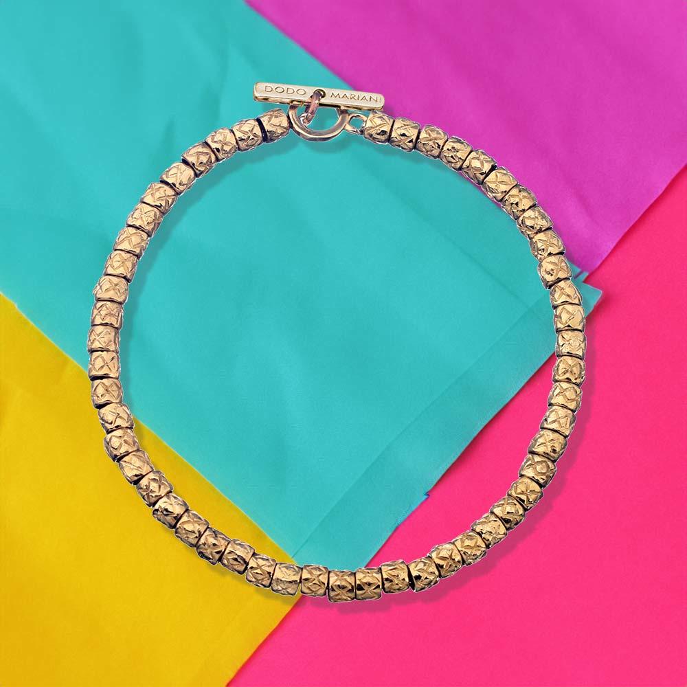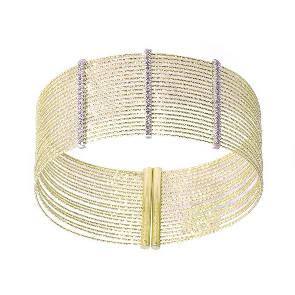 MagicWire multi-strand yellow gold bracelet with diamond bars 0.17ct. The bracelet you are looking at is a MagicWire creation, an Italian brand that combines the different nuances of female identity in a vast range of handmade jewelery made with accurate goldsmith techniques, workmanship and meticulous workmanship. This rigid bracelet is made up of many thin but resistant 18kt yellow gold threads held together firmly by 3 18kt white gold bars embellished with 0.17ct of diamonds. It is delivered with box and official MagicWire guarantee. Cicala offers free insurance coverage on the shipment of the jewel. Product designed and made in Italy - Reference MagicWire 322-B21F-GD-01.