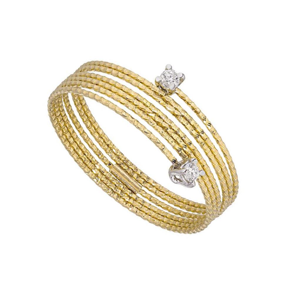 MagicWire ring yellow gold wire band with 2 diamonds 0.04ct. The ring you are looking at is a MagicWire creation, an Italian brand that combines the different nuances of the female identity in a vast range of handmade jewels made with accurate goldsmith techniques, workmanship and meticulous workmanship. This ring is made of a thin but resistant 18kt yellow gold wire. The ends are embellished with 2 diamonds for a total of 0.04ct. It is delivered with box and official MagicWire guarantee. Cicala offers free insurance coverage on the shipment of the jewel. Product designed and made in Italy - Reference MagicWire 14-A-GD-01.