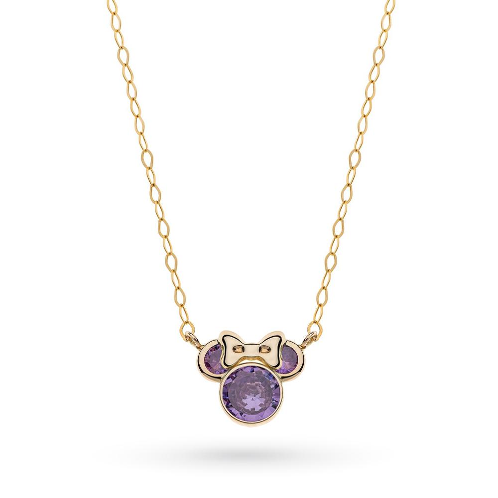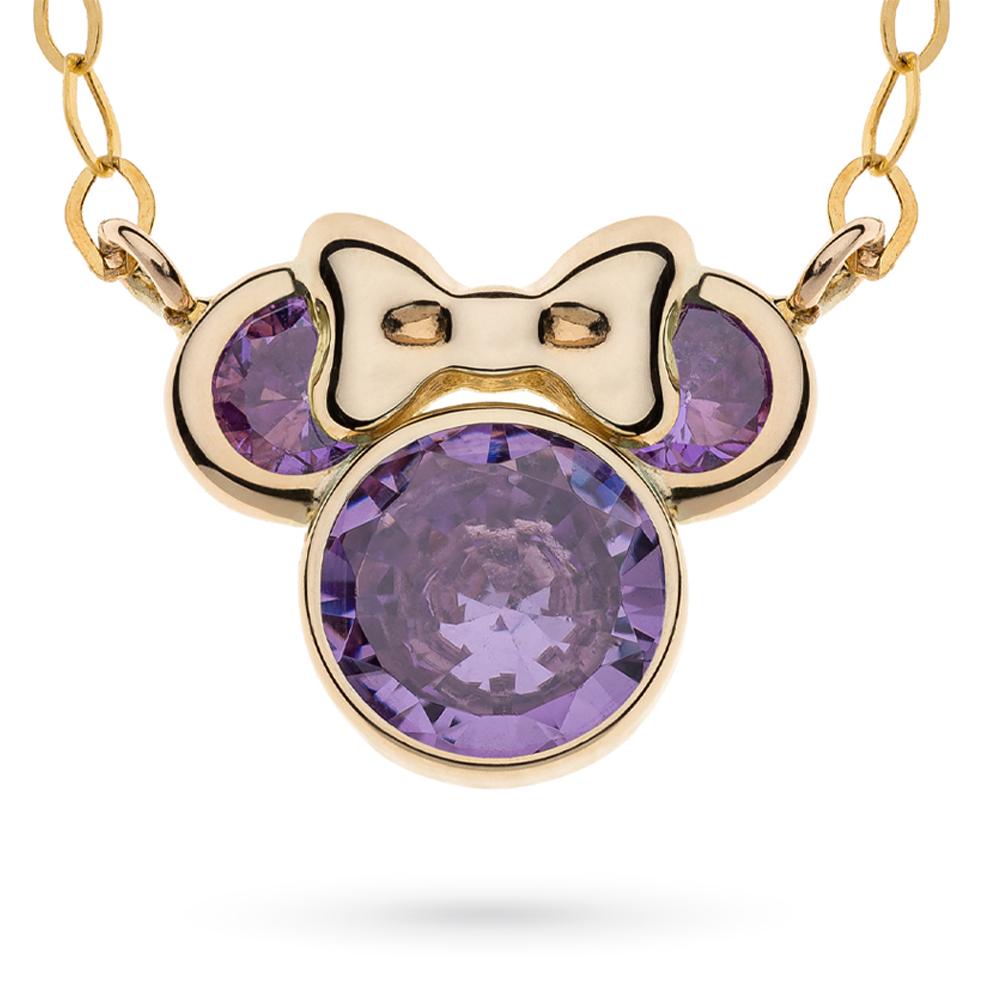 Purple enamelled heart pendant and necklace in 9kt yellow gold.