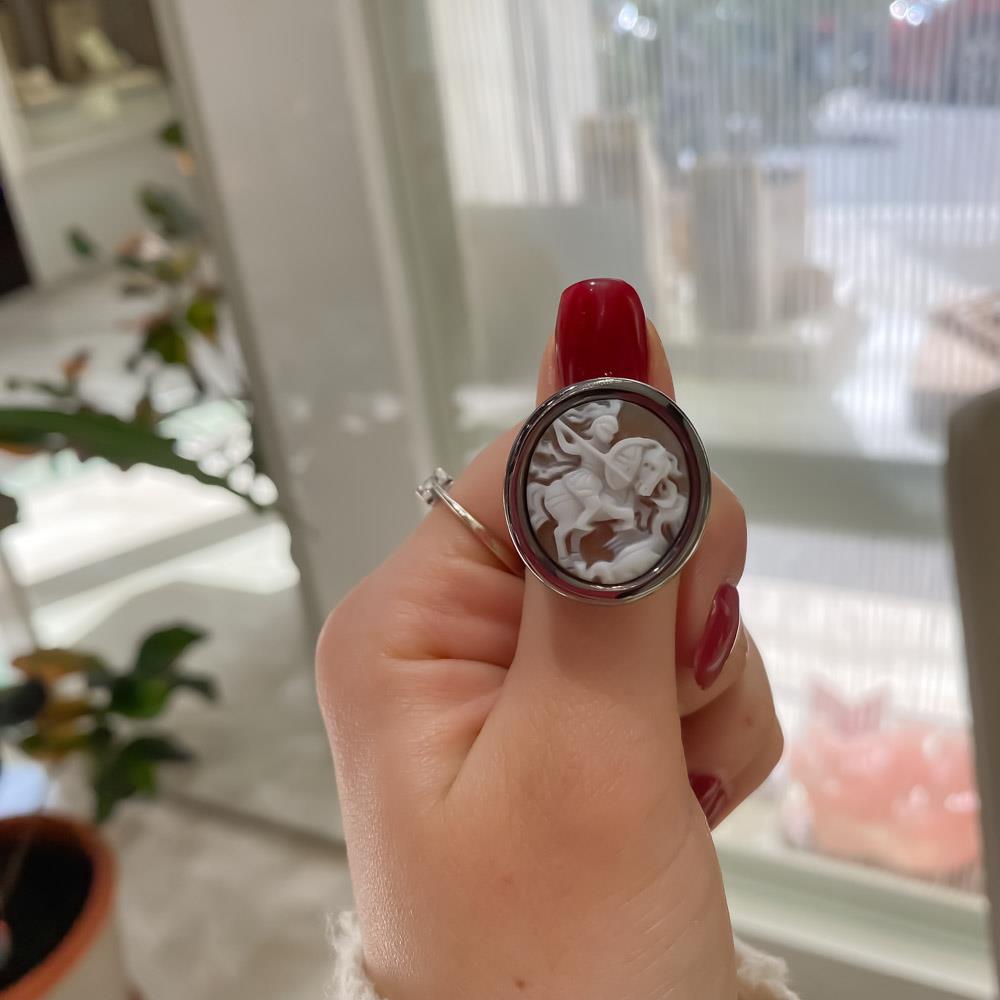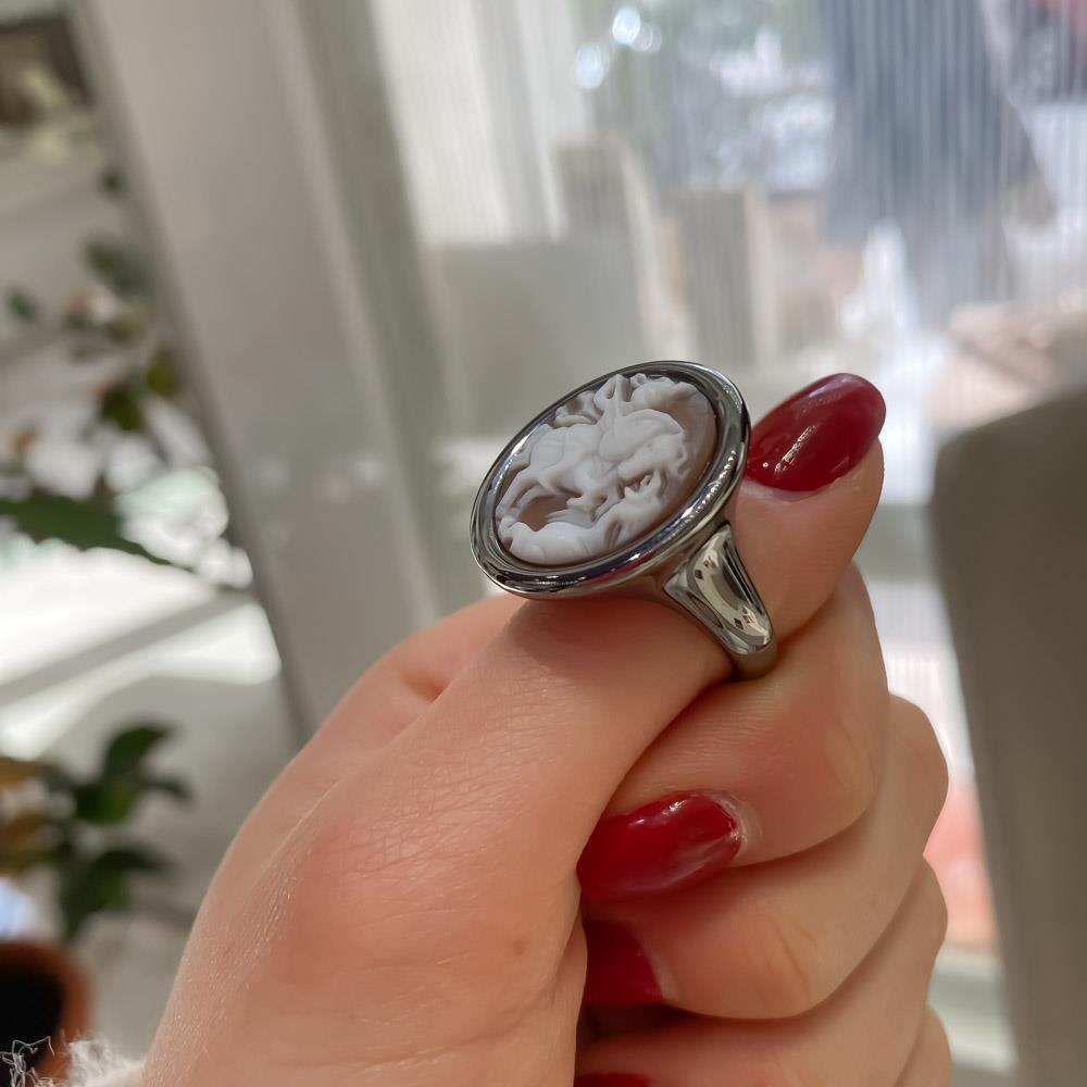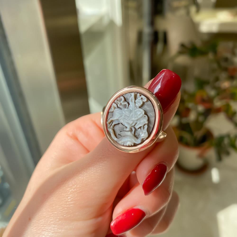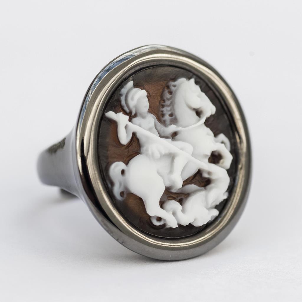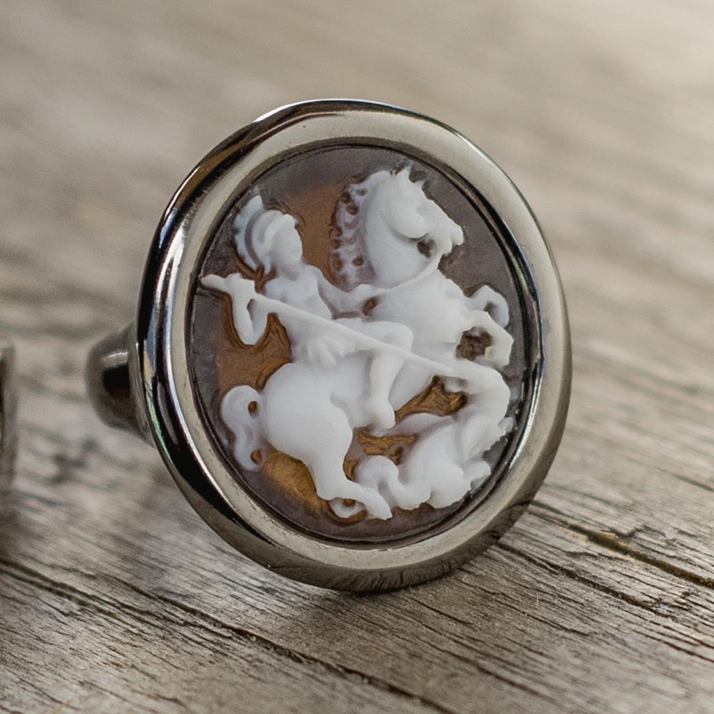 Anello Genova cammeo San Giorgio drago misura 16-23.