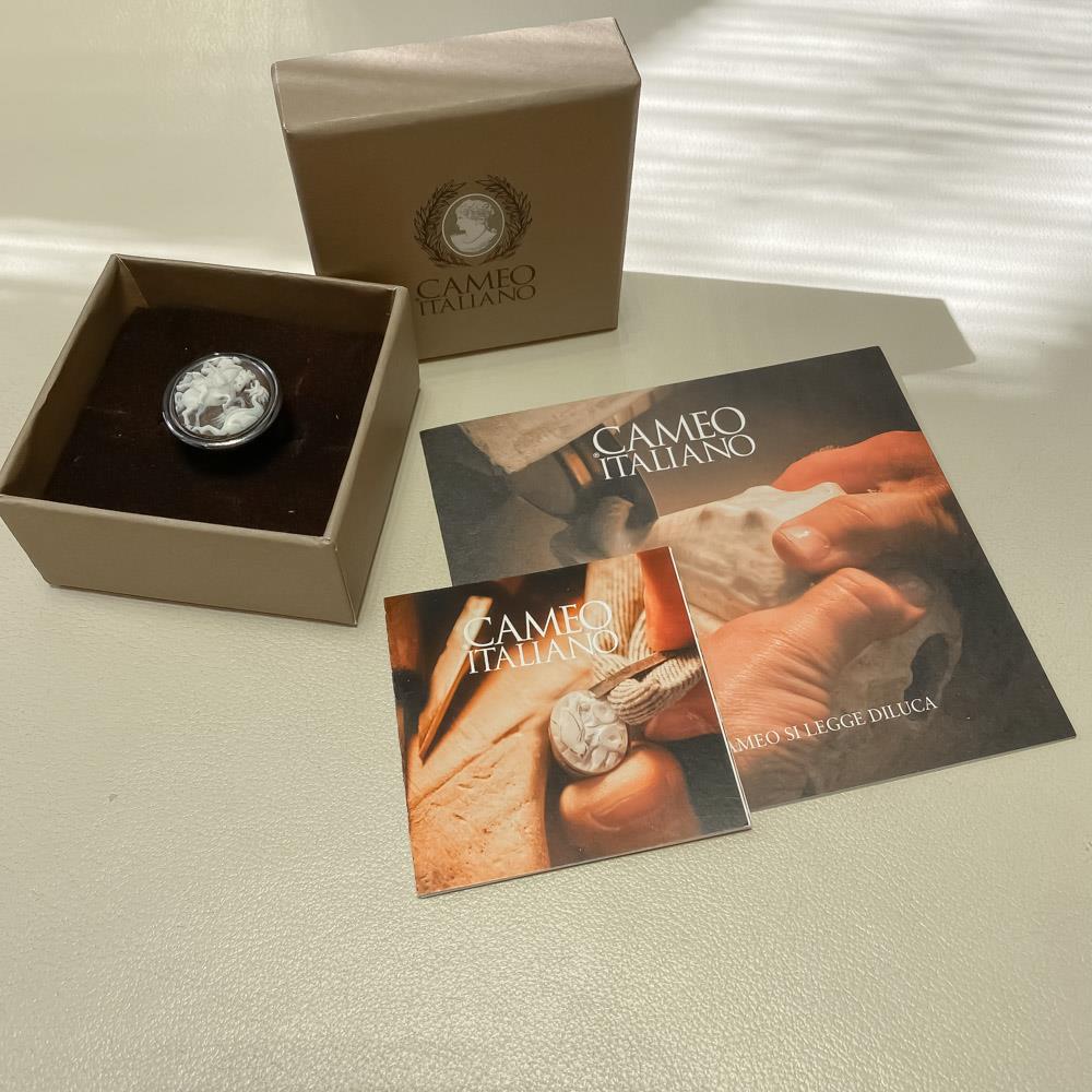 L'anello di Genova con inciso San Giorgio che uccide il Drago è un omaggio di Cicala a tutti gli amanti della città , ma non solo... Questa creazione infatti simboleggia la forza del bene (San Giorgio) contro il male (il Drago). La montatura dell'anello è realizzata in argento 925 nickel free anallergico con brunitura superficiale, per mettere in risalto il cammeo centrale inciso a mano con misura diametro di circa 20 mm. Data la manualità dell'incisione ogni anello è diverso da ogni altro. Il gambo aperto consente di regolare la misura autonomamente a seconda del dito a cui si desidera indossarlo, che può variare dalla misura 24 alla 33.