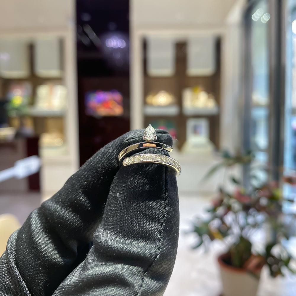 Anello Twist oro bianco 18kt con goccia di diamante e brillanti by RF Jewels. Anello modello Twist a spirale creato dal marchio di gioielleria italiana RF Jewels. Questo magnifico anello, raffinato ed elegante, è abbellito da un diamante taglio goccia. Sul gambo sono inoltre presenti tanti piccoli diamanti taglio brillante. Misura dito: 13.